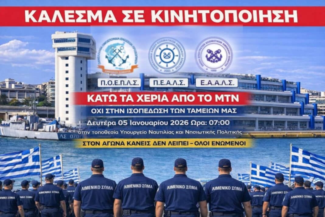 Γι’ αυτό σας ΚΑΛΟΥΜΕ σε μαζική συμμετοχή στη συγκέντρωση διαμαρτυρίας, που θα πραγματοποιηθεί τη Δευτέρα 5 Ιανουαρίου 2026 και ώρα 07:00 στο Υπουργείο Ναυτιλίας & Νησιωτικής Πολιτικής!