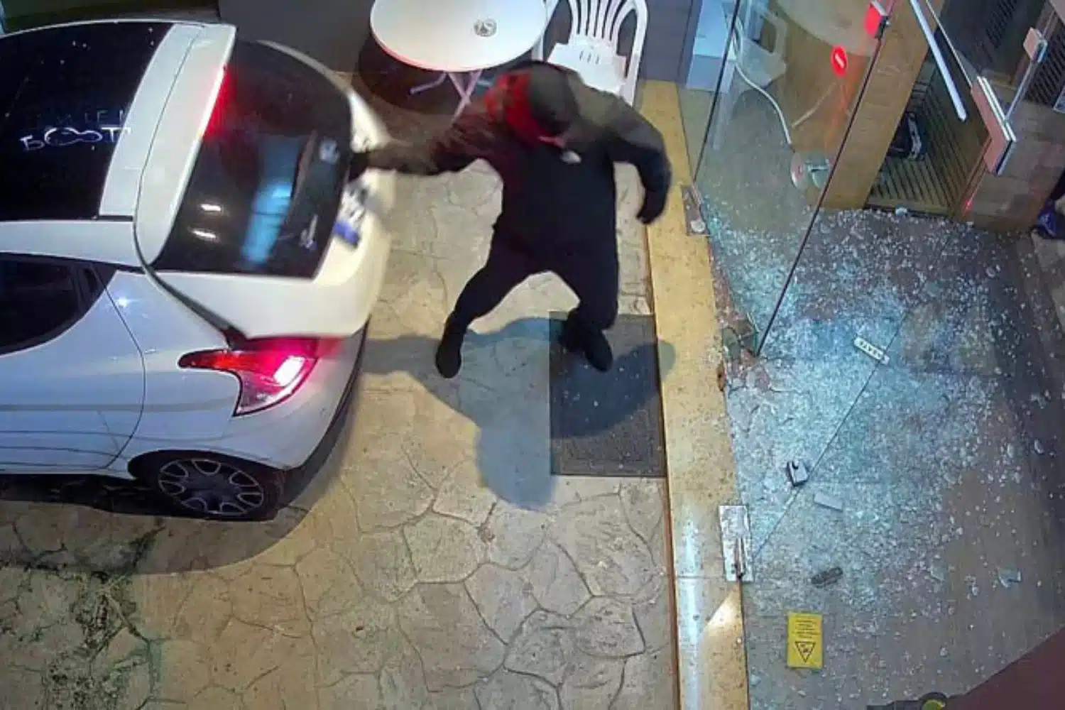 Στη συνέχεια, με όπισθεν, έπεσαν με δύναμη πάνω στην γυάλινη πόρτα, την διέλυσαν και μπήκαν στο εσωτερικό του καταστήματος.
