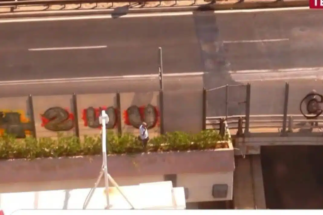 Η γέφυρα στην οποία είχε ανέβει ο άνδρας βρίσκεται απέναντι από το κτήριο του ΣΚΑΪ.