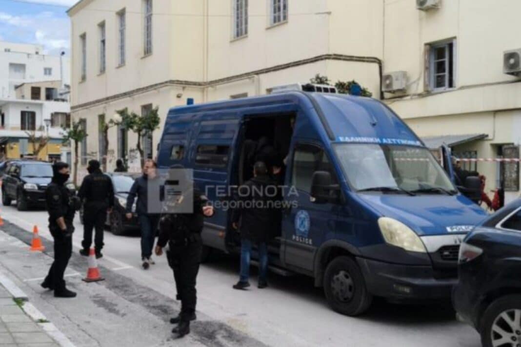 Οι 13 οδηγήθηκαν στον εισαγγελέα κάτω από αυστηρά μέτρα αστυνόμευσης και από την πίσω πόρτα του κτιρίου, σύμφωνα με το gegonota.news. Μεταξύ τους είναι και ο αρχηγός του κυκλώματος.