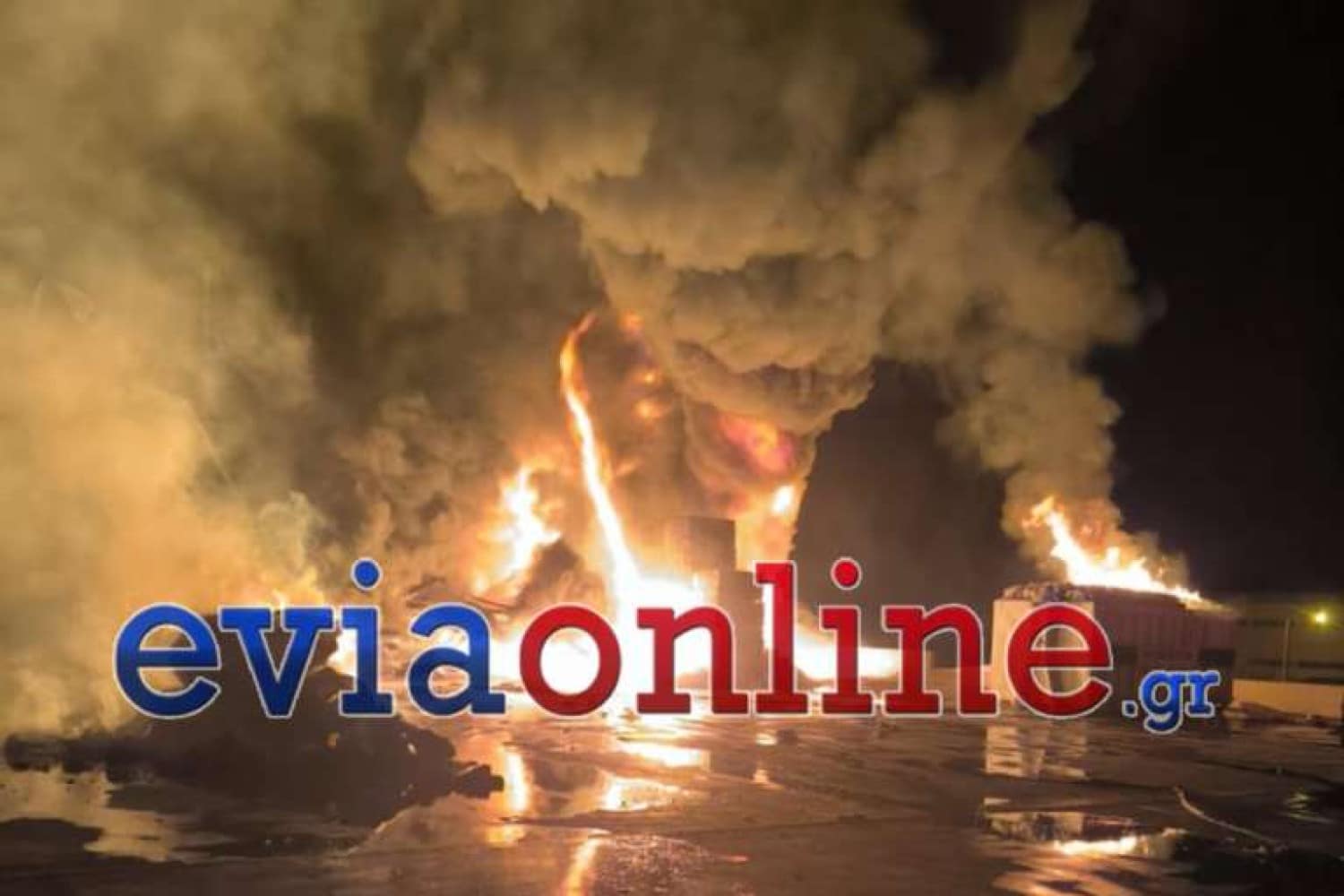 Μαίνεται η μεγάλη φωτιά σε εργοστάσιο στη Ριτσώνα – Στάλθηκε μήνυμα από το «112» στους κατοίκους (εικόνες)