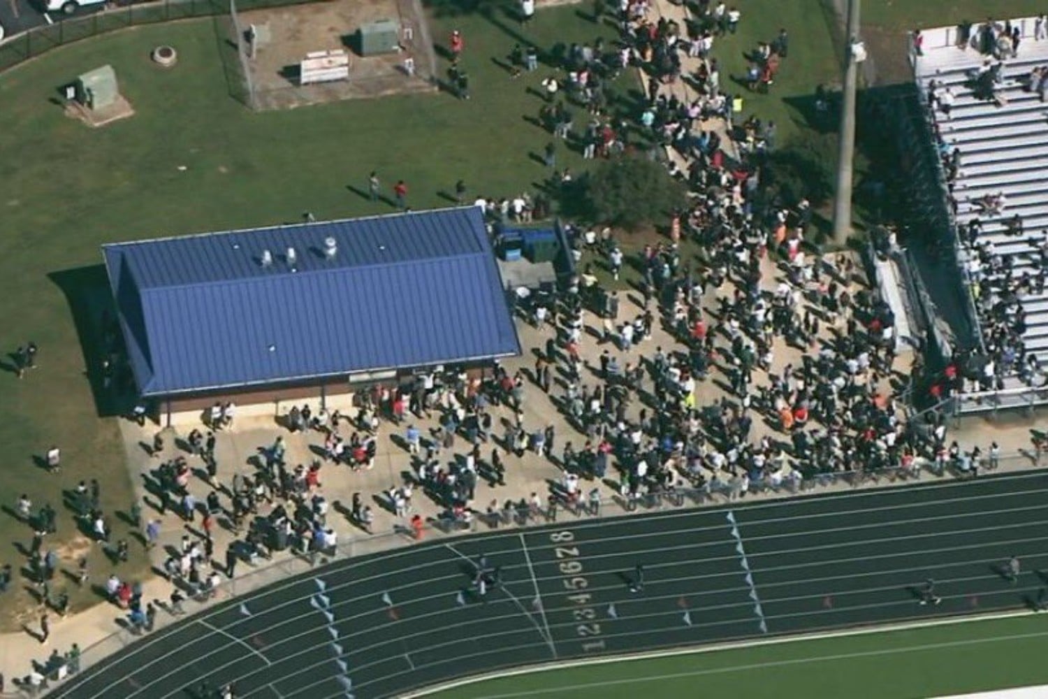 Το λύκειο, σε ήσυχο προάστιο της μητροπολιτικής περιοχής της Ατλάντας, με γρασίδι και βλάστηση γύρω του, πολύ γρήγορα αποκλείστηκε από μεγάλη δύναμη της αστυνομίας.