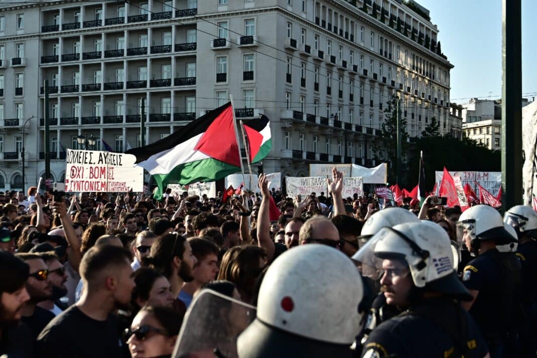 Νέα συγκέντρωση αλληλεγγύης στην Παλαιστίνη πραγματοποιείται αυτή την ώρα στο Σύνταγμα, στο κέντρο της Αθήνας, ύστερα από κάλεσμα της Παλαιστινιακής Παροικίας Ελλάδος για την «Πορεία στη Γάζα».