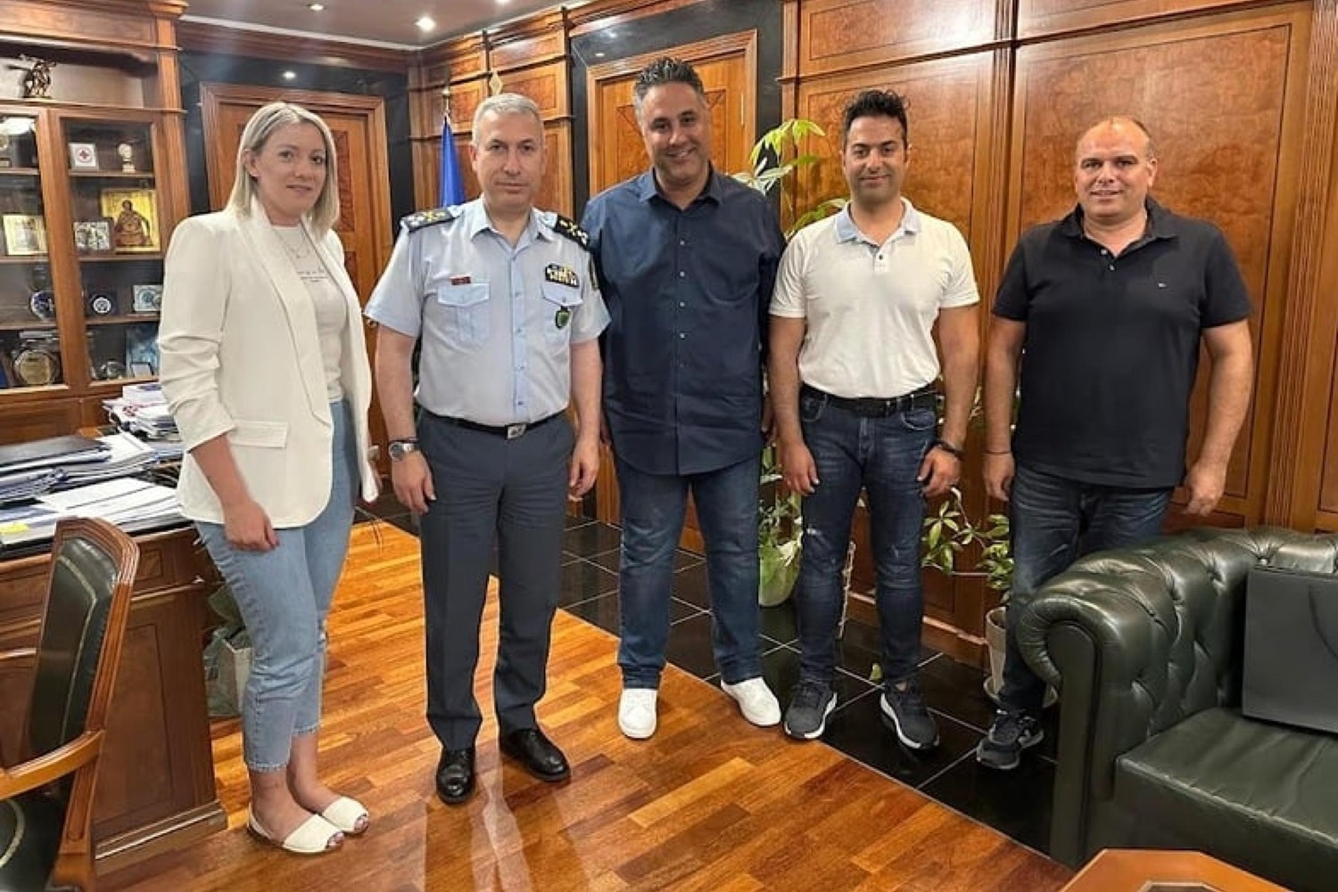 Χθές 7 Ιουνίου 2024 αντιπροσωπεία της ΕΑΥ Αχαΐας αποτελούμενη από τον Πρόεδρο Τσίτσικα Χαράλαμπο, τον Α΄ Αντιπρόεδρο Κόρδα Ιωάννη, την Β΄ Αντιπρόεδρο Χαϊκάλη Αργυρώ και τον Γενικό Γραμματέα Μπαλάση Γεώργιο είχε συνάντηση με τον Αρχηγό της ΕΛ.ΑΣ. Αντιστράτηγο Μάλλιο Δημήτριο στο γραφείο του στο Υπουργείο Προστασίας του Πολίτη.