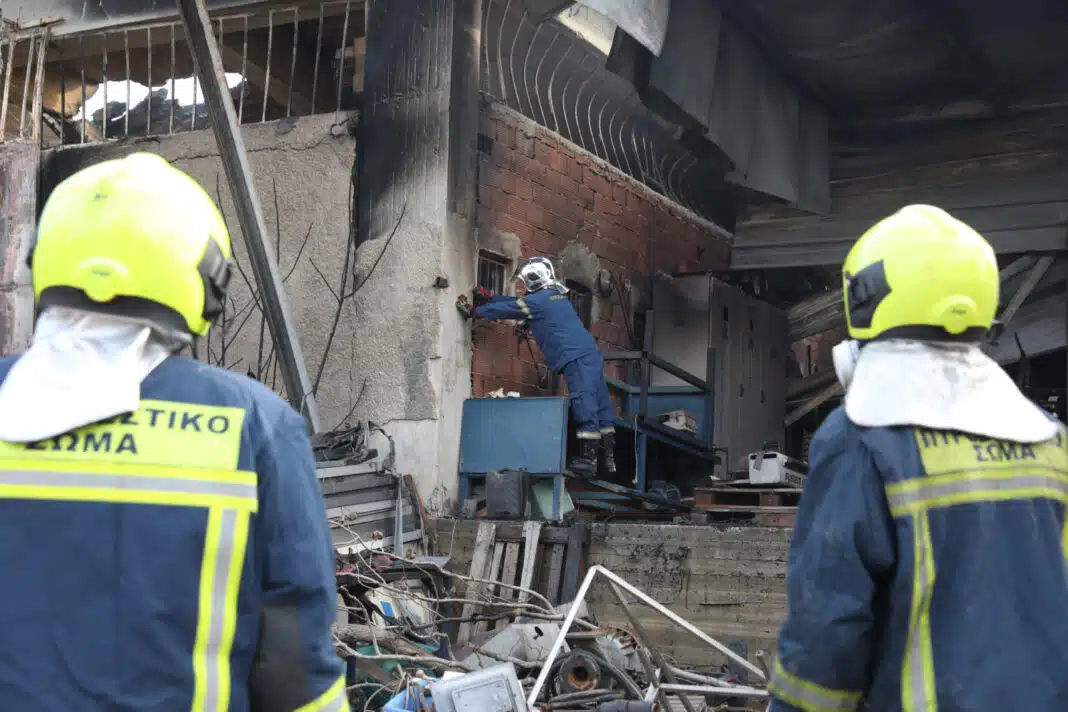 Το εργοστάσιο πλαστικών που βρίσκεται στη συμβολή των οδών Δεκελείας και Κατάρα καταστράφηκε ολοσχερώς.