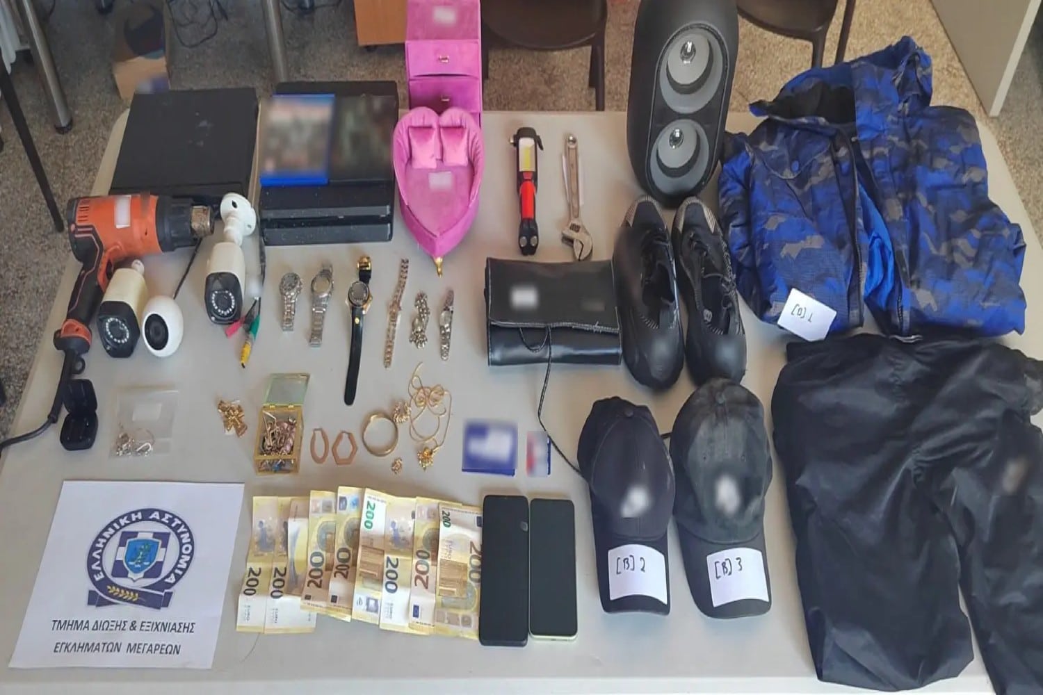 - ρουχισμός που χρησιμοποιήθηκε κατά τη διάπραξη των κλοπών,