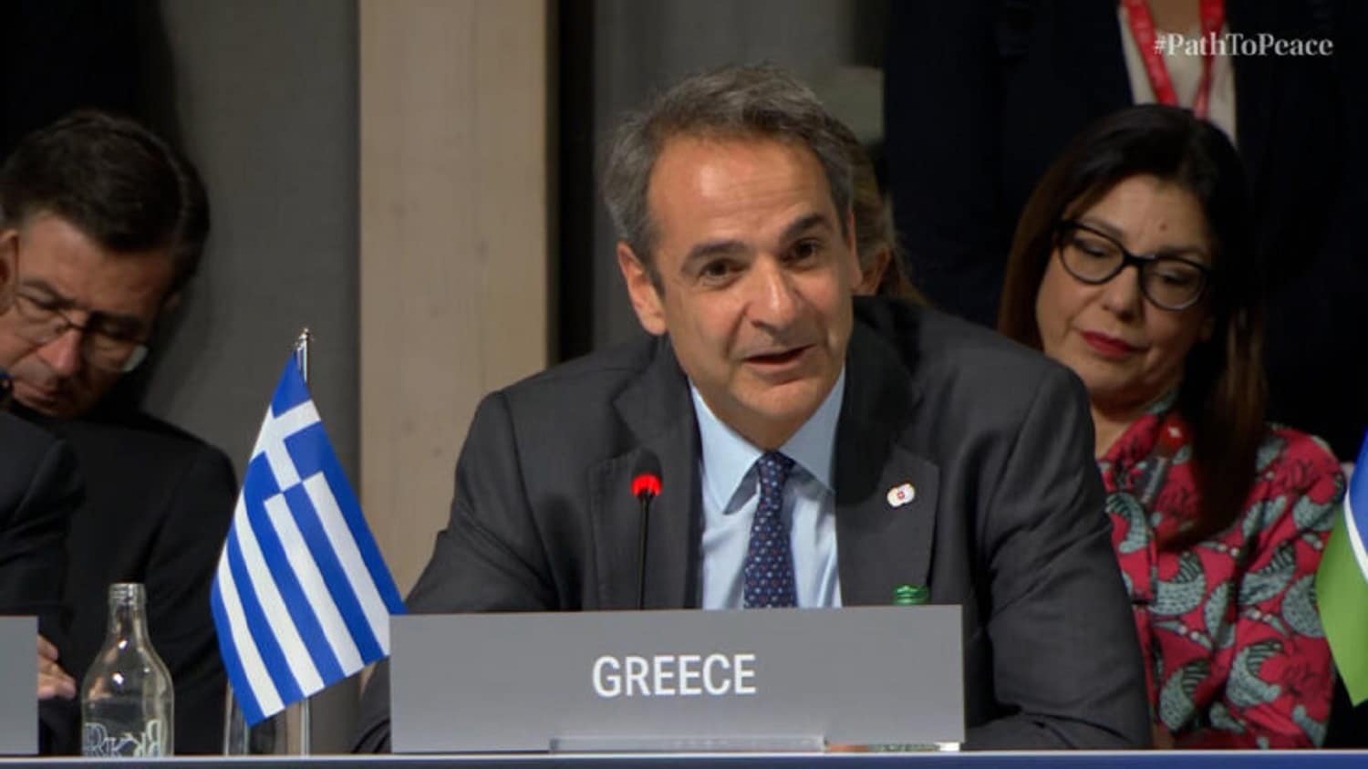Αγαπητοί συνάδελφοι, πριν από ένα χρόνο δεν ήταν φανερό ότι αυτή η Σύνοδος θα λάμβανε χώρα. Η Ρωσία έκανε ό, τι μπορούσε για να μην γίνει. Σήμερα όμως, 109 χώρες και διεθνείς οργανισμοί εκπροσωπούνται γύρω από αυτό το τραπέζι, καταδεικνύοντας, όπως είπε και ο Ολλανδός πρωθυπουργός, ότι η σύρραξη στην Ουκρανία είναι παγκόσμιο ζήτημα. Πολλά συζητήθηκαν στις συνεδρίες μας.