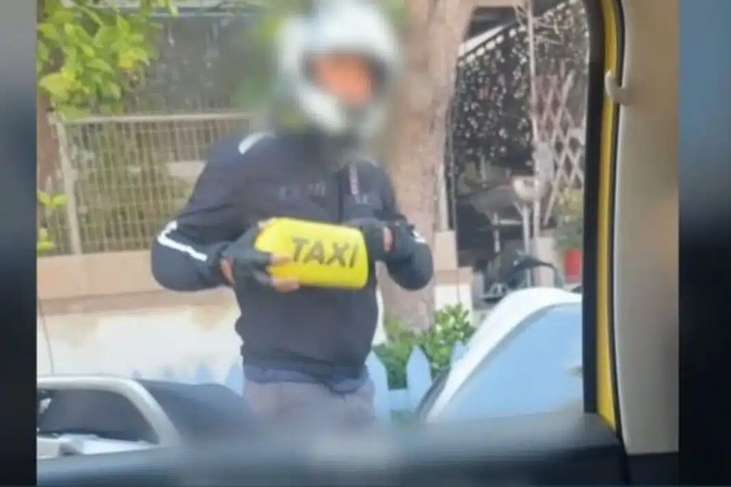 Στο βίντεο φαίνεται ένας άνδρας με κράνος πάνω σε μηχανή να σταματάει δίπλα στο ταξί και να παίρνει το καπέλο από το όχημα. Το βάζει μέσα στο μπουφάν του, ανεβαίνει στη μοτοσικλέτα του και εξαφανίζεται.