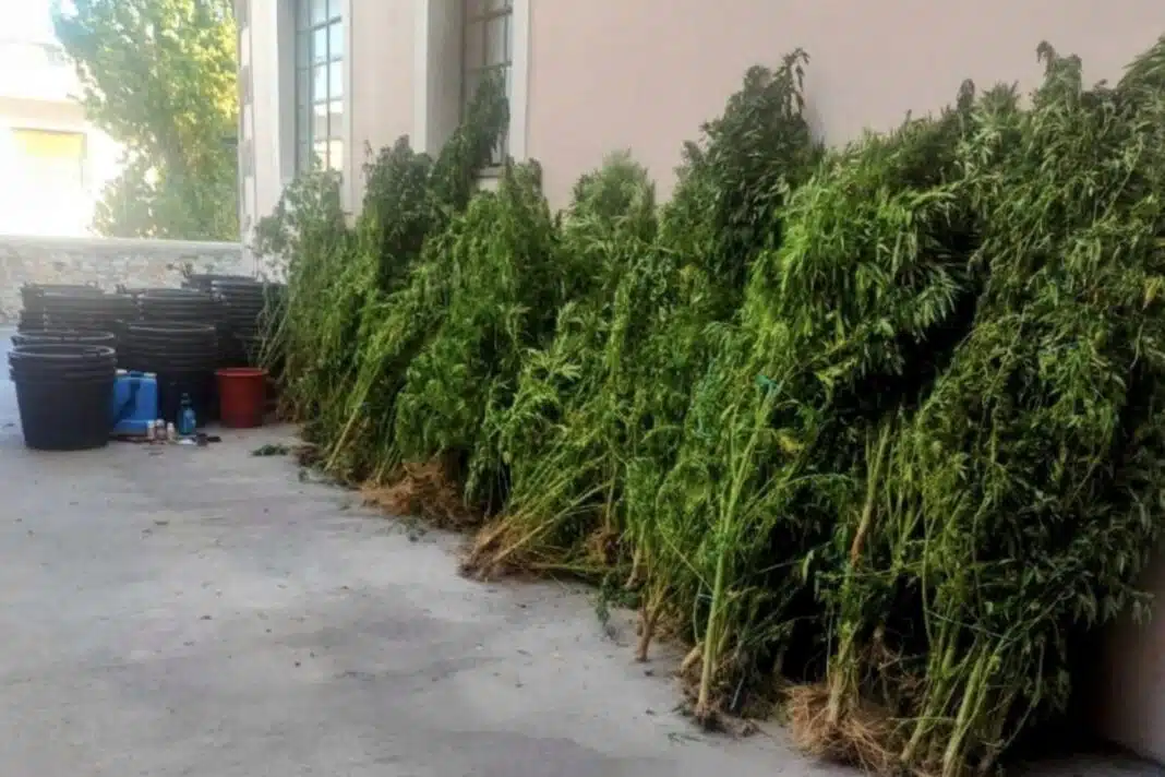 Οι δύο φυτείες σε κοντινή απόσταση μεταξύ τους, η πρώτη με 73 δενδρύλλια κάνναβης ύψους έως 3,5 μέτρα τοποθετημένα σε γλάστρες, αλλά και οκτώ δενδρύλλια κάνναβης εκριζωμένα σε στάδιο αποξήρανσης και διάφορα εργαλεία και αντικείμενα καλλιέργειας.