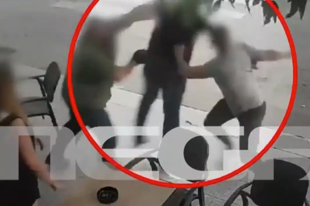 Ο 52χρονος δέχεται χτυπήματα στο πρόσωπο και το σώμα και σωριάζεται αναίσθητος. Ένας άνδρας επιχειρεί να κατευνάσει τα πνεύματα και να καλέσει ασθενοφόρο.