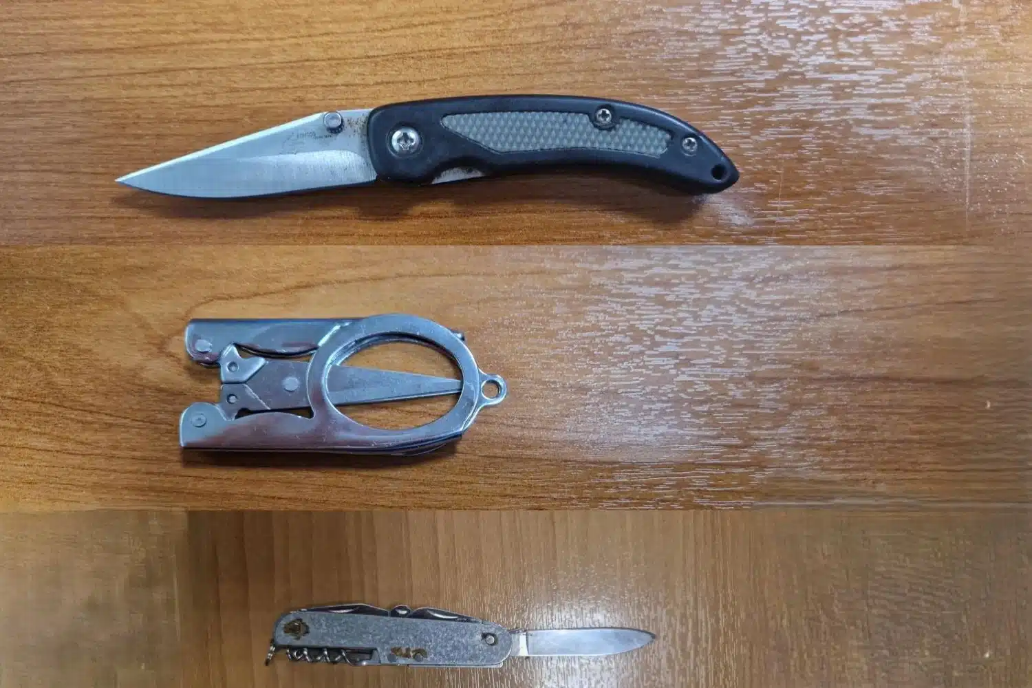 Ακόμα στην κατοχή των άλλων δύο κατηγορούμενων βρέθηκαν και κατασχέθηκαν αναδιπλούμενος σουγιάς και αναδιπλούμενο ψαλίδι.