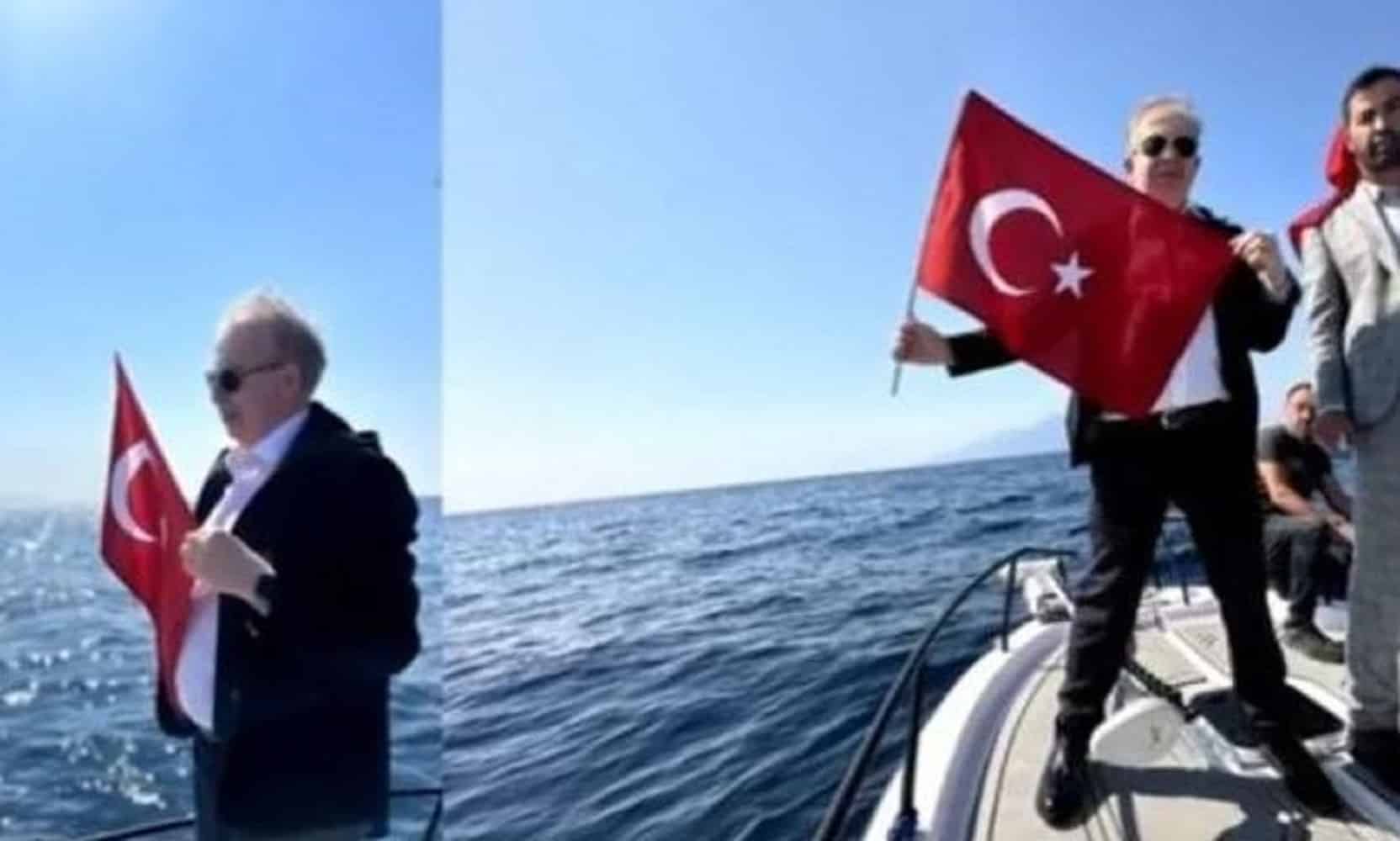 Ο ίδιος δημοσίευσε βίντεο που τράβηξε σε σκάφος στο οποίο φαίνεται να ανοίγει τουρκική σημαία, ανοιχτά μιας βραχονησίδας.