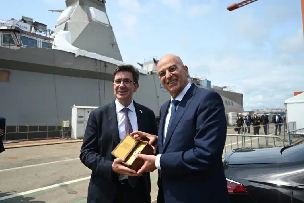 Ο Υπουργός Εθνικής Άμυνας, Νίκος Δένδιας, παρέστη σήμερα, Τετάρτη (4/6), την τελετή καθέλκυσης της Φρεγάτας «ΦΟΡΜΙΩΝ» που πραγματοποιήθηκε στις εγκαταστάσεις της «Naval Group», στη Λοριάν (Lorient) της Γαλλίας.