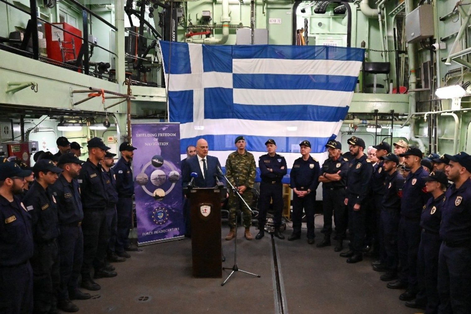 Θα παρέχει συνοδεία στον μεγαλύτερο εμπορικό στόλο του πλανήτη, προς υπεράσπιση των Εθνικών και Ευρωπαϊκών συμφερόντων και υπογραμμίζοντας τον διευρυμένο ρόλο της Ελλάδας στη διεθνή ασφάλεια και σταθερότητα. Ευχήθηκα στον Κυβερνήτη και στο πλήρωμα καλή επιτυχία στα καθήκοντά τους και ασφαλή επιστροφή. Ο Προστάτης του Πολεμικού Ναυτικού Άγιος Νικόλαος να βρίσκεται πάντα στην πλώρη τους».