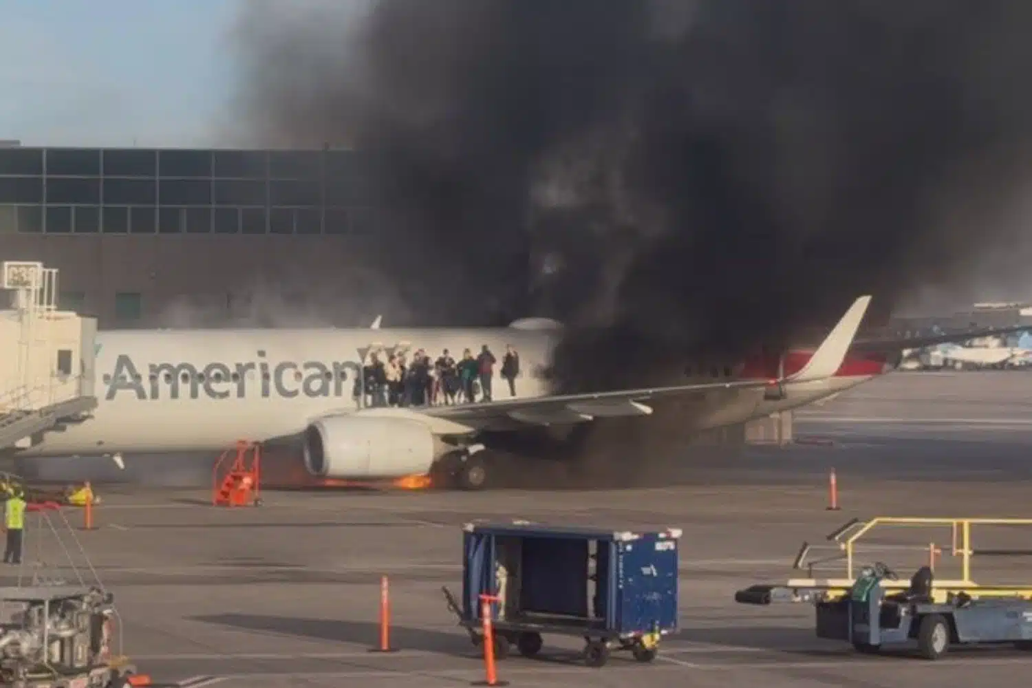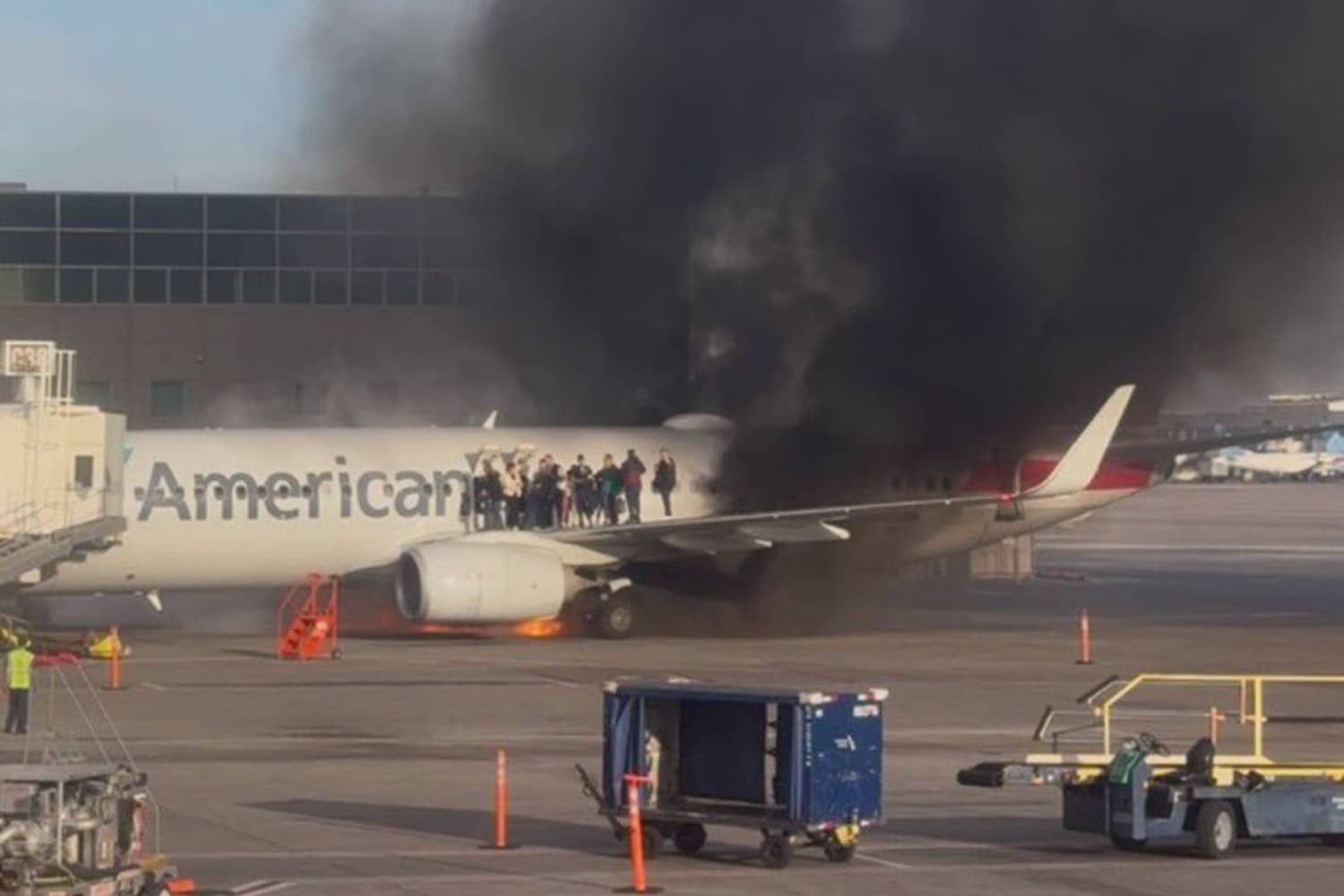 BREAKING: An American Airlines plane carrying 178 people appeared to catch fire on the tarmac after making an emergency landing at Denver International Airport Thursday evening, forcing passengers to evacuate by climbing out onto the wing of the plane. https://t.co/gWlirSyILE pic.twitter.com/AOSU1iB24H