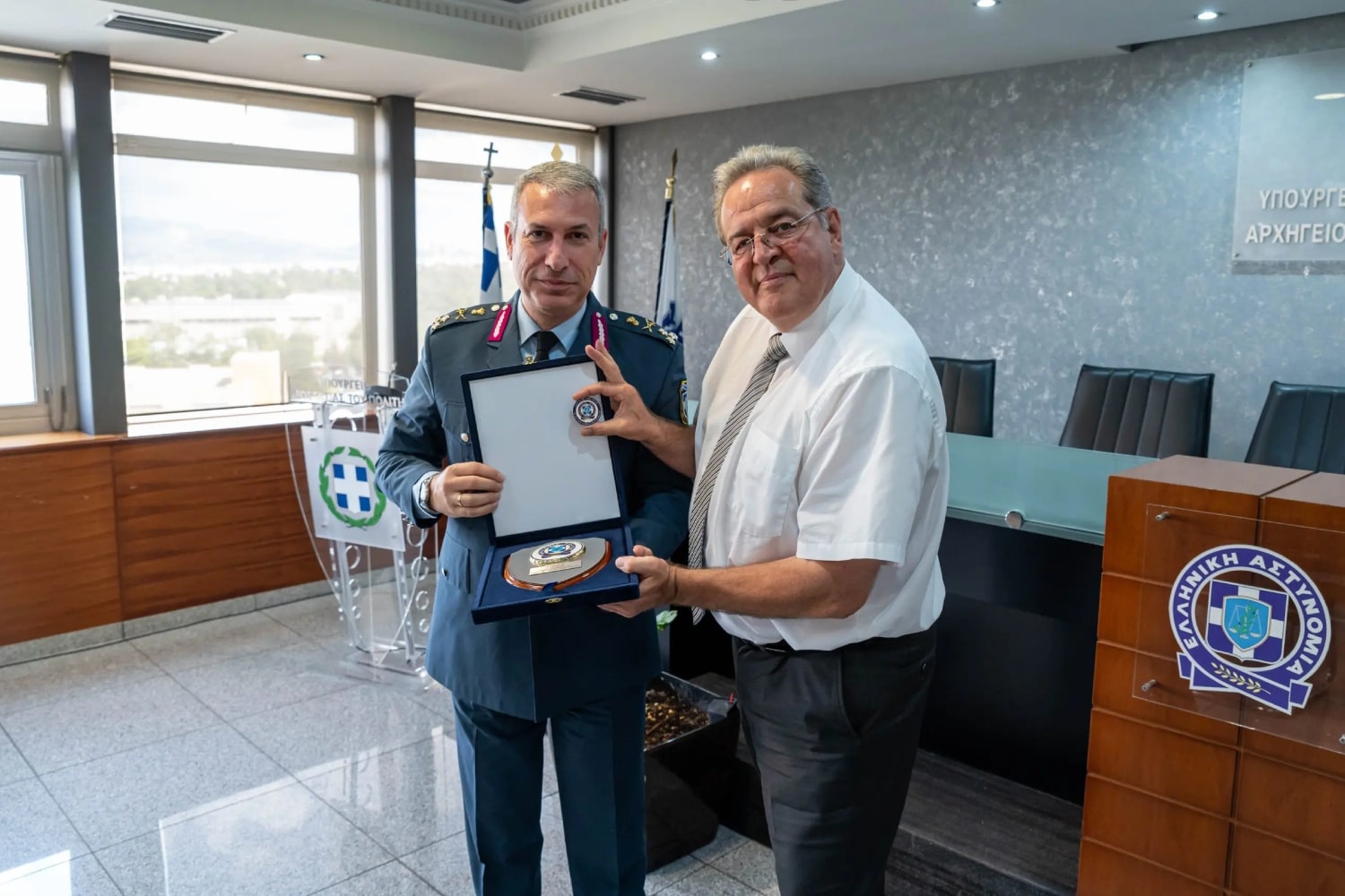 Ο Αρχηγός της Ελληνικής Αστυνομίας Αντιστράτηγος κ. Δημήτριος Μάλλιος συναντήθηκε την Τετάρτη 18/9 στο Αρχηγείο της Ελληνικής Αστυνομίας με τον Πρόεδρο της Ομοσπονδιακής Αστυνομίας της Γερμανίας (Bundespolizei) Δρ. Dieter Romann.