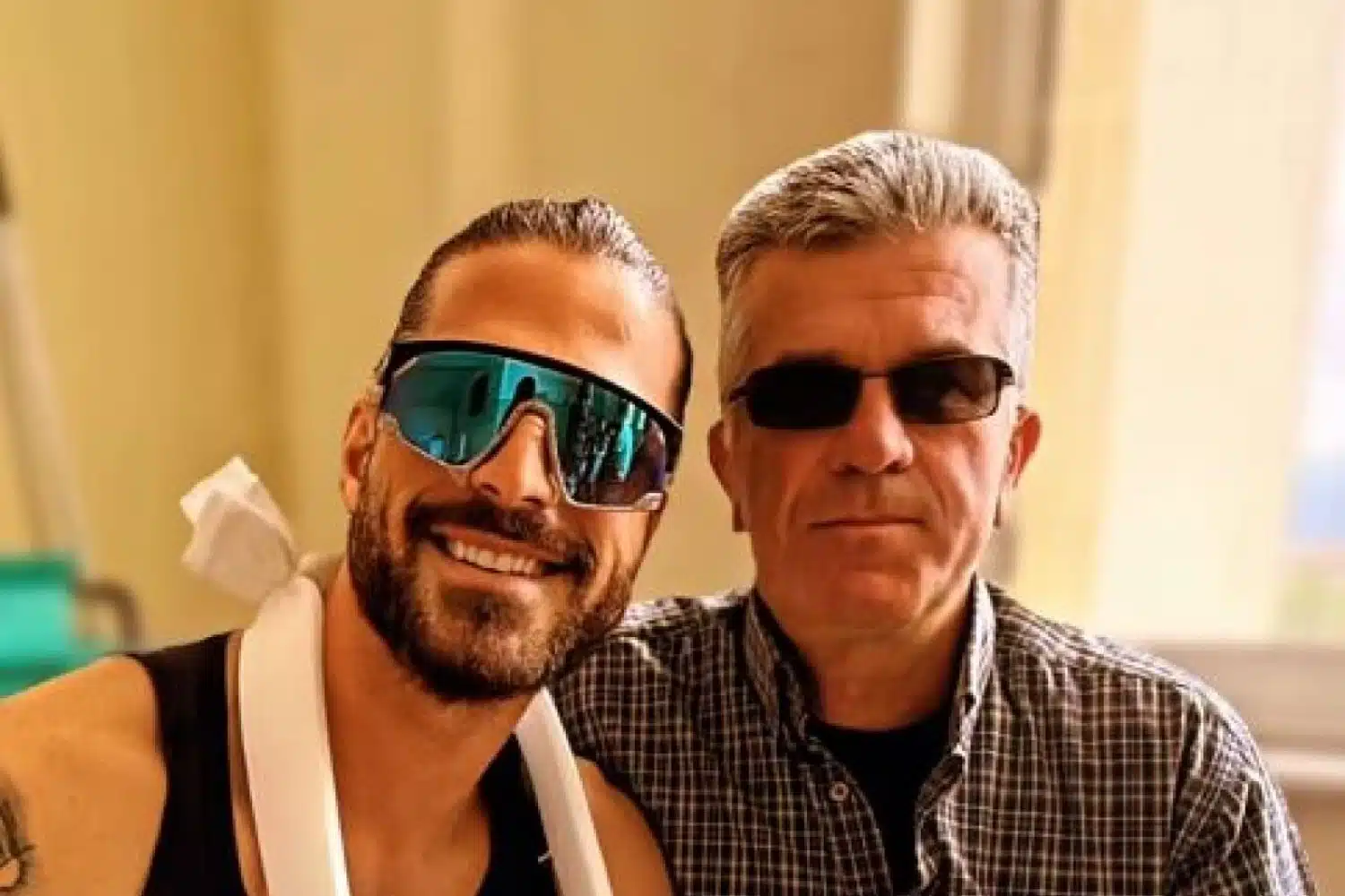 Στη φωτογραφία που δημοσίευσε στον προσωπικό του λογαριασμό στο Instagram, φαίνεται ο ίδιος χαμογελαστός να κάθεται στο κρεβάτι του νοσοκομείου, φορώντας γυαλιά ηλίου και έχοντας τα χέρια του τυλιγμένα με επιδέσμους, ενώ στο πλευρό βρίσκεται ο πατέρας του.