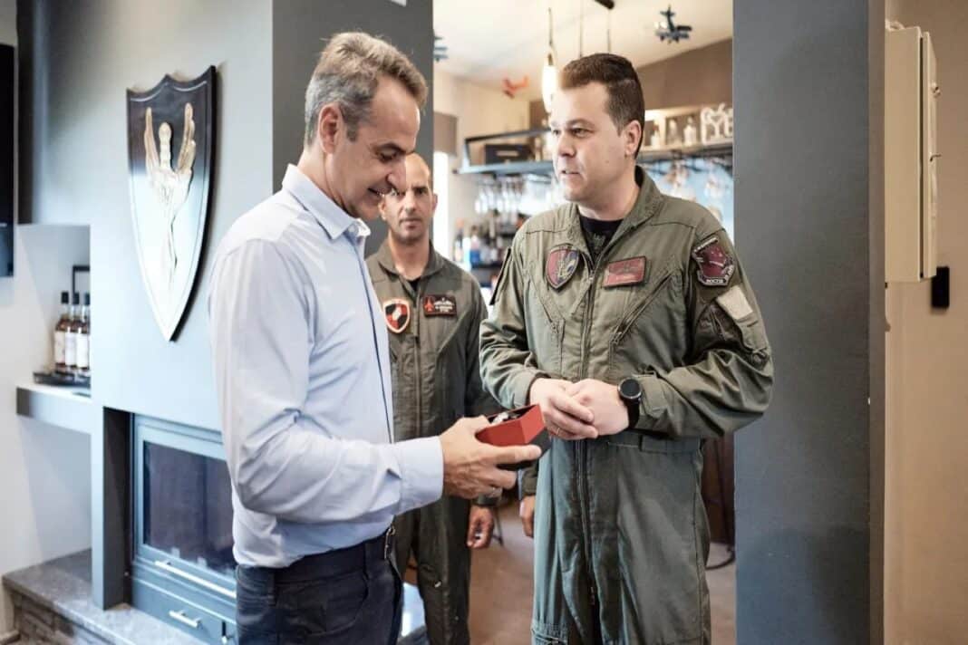 Ο Κυριάκος Μητσοτάκης επισκέφθηκε τα «γεράκια» της 111ης Πτέρυγας Μάχης – Οι συνομιλίες με τους πιλότους και η πρόσκληση για πτήση με F-16