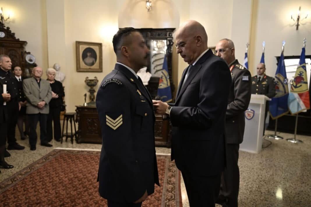 Ο Υπουργός Εθνικής Άμυνας, Νίκος Δένδιας, παρέστη σήμερα, Πέμπτη 27 Νοεμβρίου 2025, στην τελετή απονομής του Μεταλλίου Εξαιρέτου Πράξεως στα στελέχη των Ενόπλων Δυνάμεων που συμμετείχαν στην ελληνική αποστολή ανθρωπιστικής βοήθειας και υγειονομικής συνδρομής στους πλημμυροπαθείς πολίτες της Λιβύης, στις 17/09/2023.