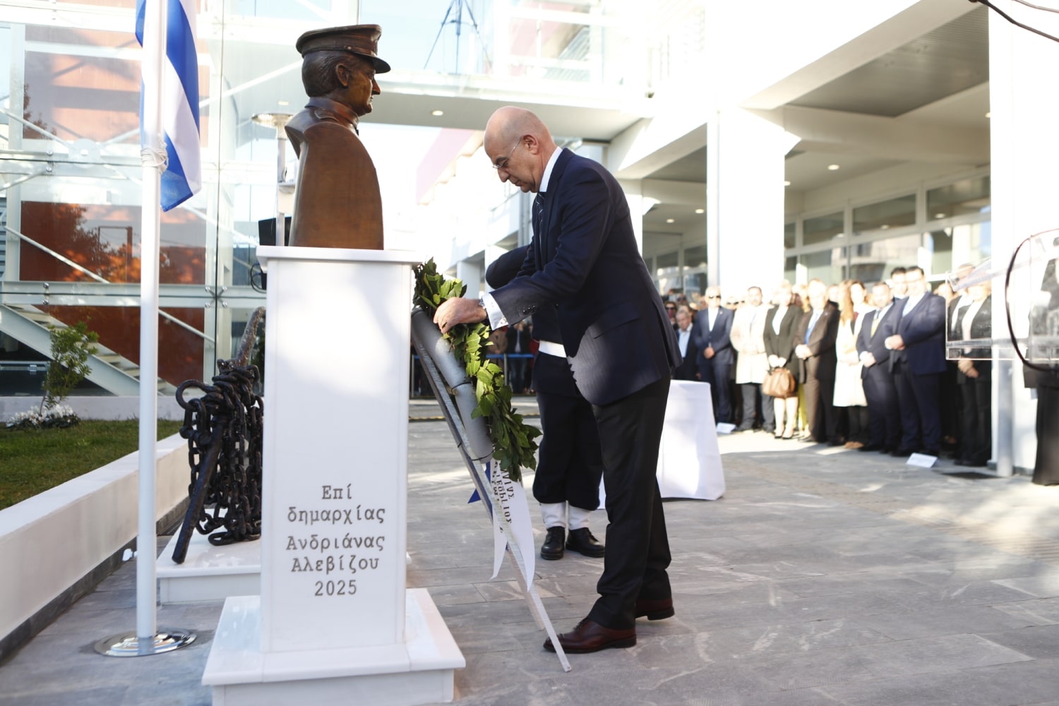 Ο υπουργός Εθνικής Άμυνας, Νίκος Δένδιας, παρέστη σήμερα, Παρασκευή (31/1), στην τελετή των αποκαλυπτηρίων της προτομής του πλοιάρχου Έκτορα Γιαλοψού ΠΝ, στο Πολυδύναμο Κέντρο «Μίκης Θεοδωράκης», στο Ίλιον.