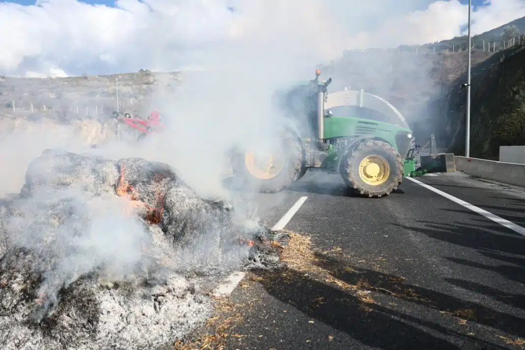 Οι αγρότες έκλεισαν την Εθνική Οδό Αθηνών-Λαμίας από το Κάστρο Βοιωτίας και τις σήραγγες των Τεμπών – Καίνε μπάλες από άχυρο (βίντεο)