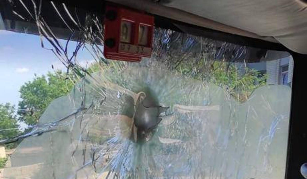 In the Luhansk region, an armored evacuation vehicle came under fire from the #Russian army. Shell fragments pierced the car’s armor.#BREAKING pic.twitter.com/robXNtATjF