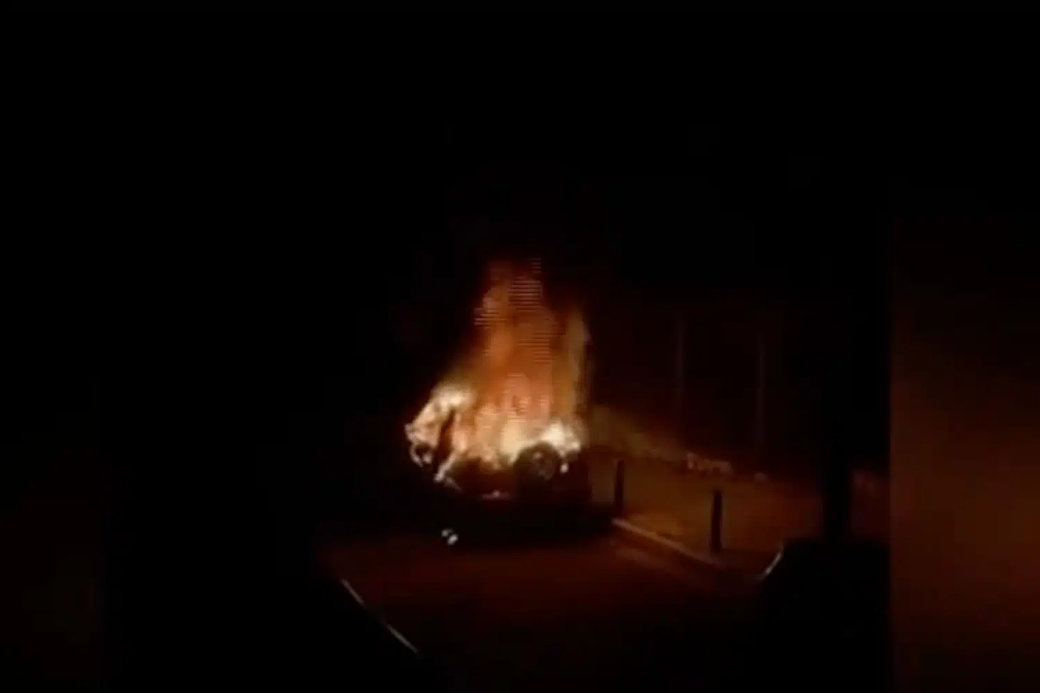 Να σημειωθεί ότι η πυρκαγιά ξέσπασε στις 00:45 στο κόκκινο τζιπ το οποίο δεν κάηκε ολοσχερώς.
