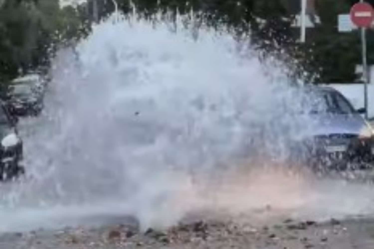 Στο μεταξύ, ήταν τέτοια η ορμή του νερού που έβγαινε από τον σπασμένο αγωγό, ώστε άνθρωποι που βρέθηκαν στο σημείο… έβαλαν κάδους απορριμμάτων για να την περιορίσουν μέχρι να φτάσει μια μπουλντόζα και να σκάψει το οδόστρωμα για να γίνουν οι εργασίες αποκατάστασης.