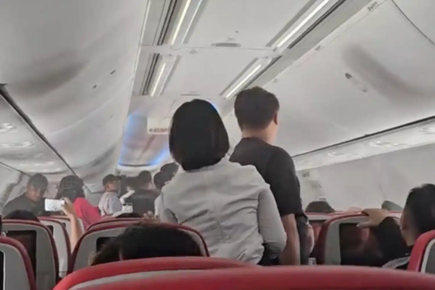 Κλιπ στο TikTok που μοιράστηκε ο Independent, δείχνει καπνό να απλώνεται στην καμπίνα από τον χώρο αποσκευών, τυλίγοντας τον χώρο σε ένα λευκό σύννεφο. Στο βίντεο φαίνονται οι αεροσυνοδοί να ψαχουλεύουν τους φοριαμούς αποσκευών για να βρουν πηγή του καπνού.