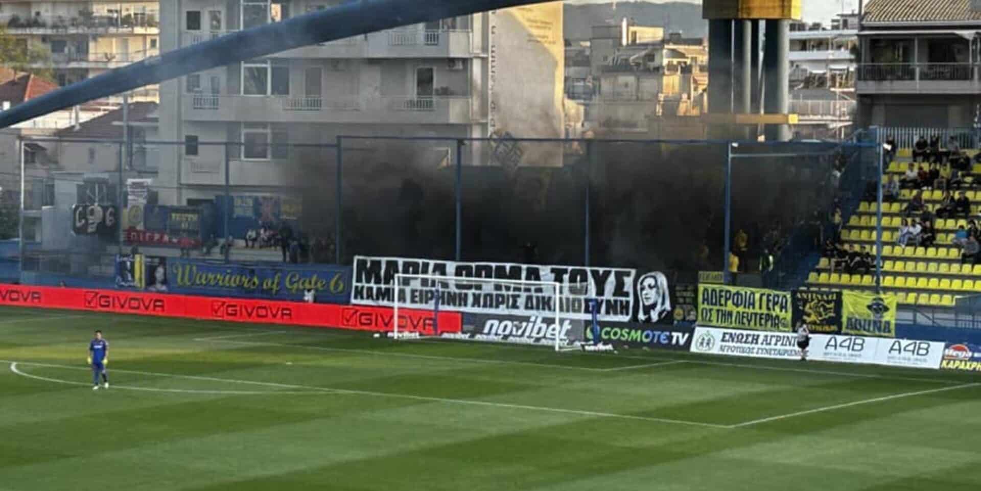 Σε μια πολύ σημαντική και αξιέπαινη κίνηση με ξεκάθαρο μήνυμα για την τραγωδία των Τεμπών, έστειλαν οι φίλαθλοι του Παναιτωλικού. Συγκεκριμένα, στο πλαίσιο της αναμέτρησης με τον Βόλο στο Αγρίνιο για την 3η αγωνιστική των playouts της Super League, οι φίλοι των γηπεδούχων ανάρτησαν πανό στήριξης προς την Μαρία Καρυστιανού.
