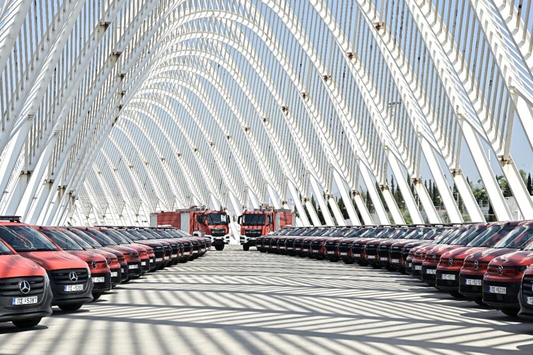 Στο ΟΑΚΑ παρουσία του πρωθυπουργού Κυριάκου Μητσοτάκη πραγματοποιήθηκε το πρωί της Παρασκευής η τελετή παράδοσης 164 νέων οχημάτων στην Πυροσβεστική.