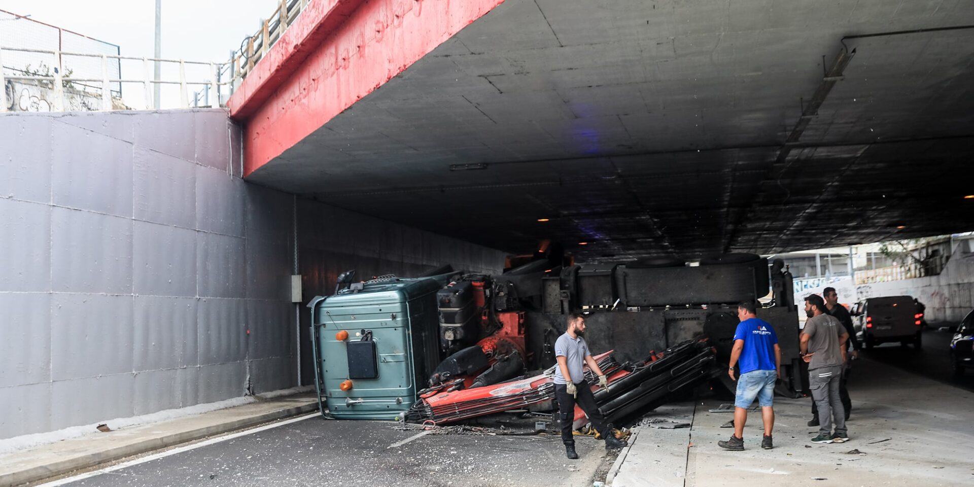 Ανατροπή φορτηγού στη Λ. Ποσειδώνος (Παλιά Παραλιακή) στο ύψος της γέφυρας Εσπλανάδας, στο ρεύμα κυκλοφορίας πρός Πειραιά. Διακοπή της κυκλοφορίας. Πέμπτη 7 Σεπτεμβρίου 2023 (ΓΙΑΝΝΗΣ ΠΑΝΑΓΟΠΟΥΛΟΣ / EUROKINISSI)