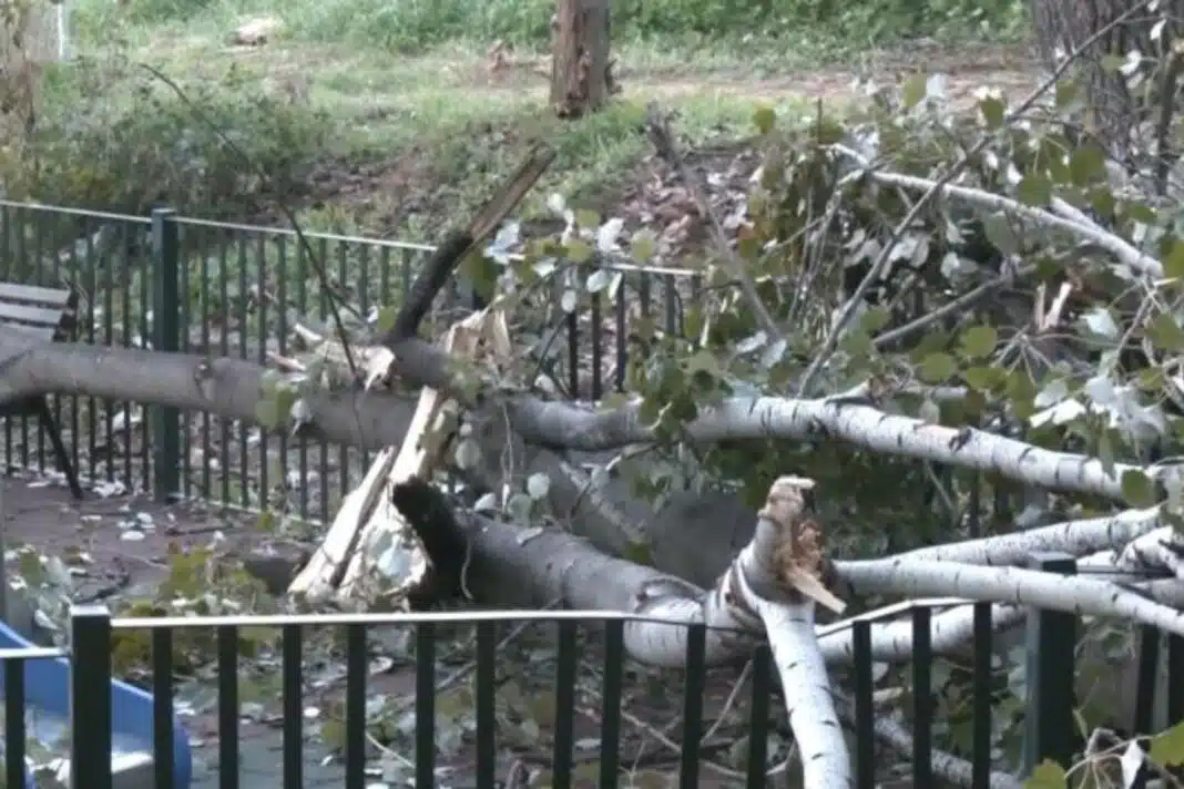 Η πτώση του δέντρου έχει προκαλέσει ζημιές τόσο στα κιγκλιδώματα όσο και σε κάποια παιχνίδια και από τύχη δεν συνέβη κάτι χειρότερο.