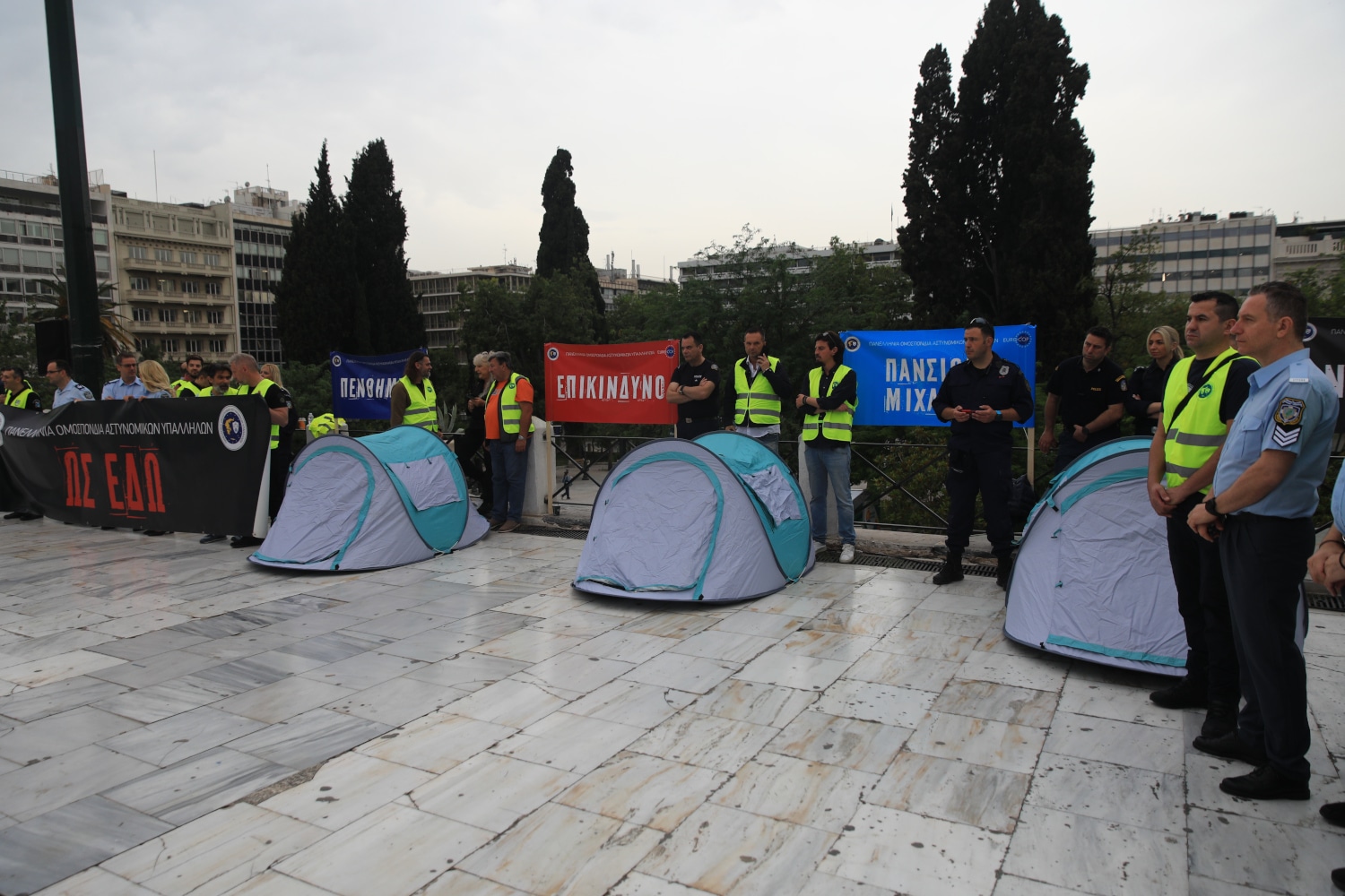 Σκηνές στο Σύνταγμα έστησαν αστυνομικοί προκειμένου να διαμαρτυρηθούν, διεκδικώντας τα δικαιώματά τους εξαπολύοντας πυρά προς την ηγεσία του υπουργείου Προστασίας του Πολίτη.
