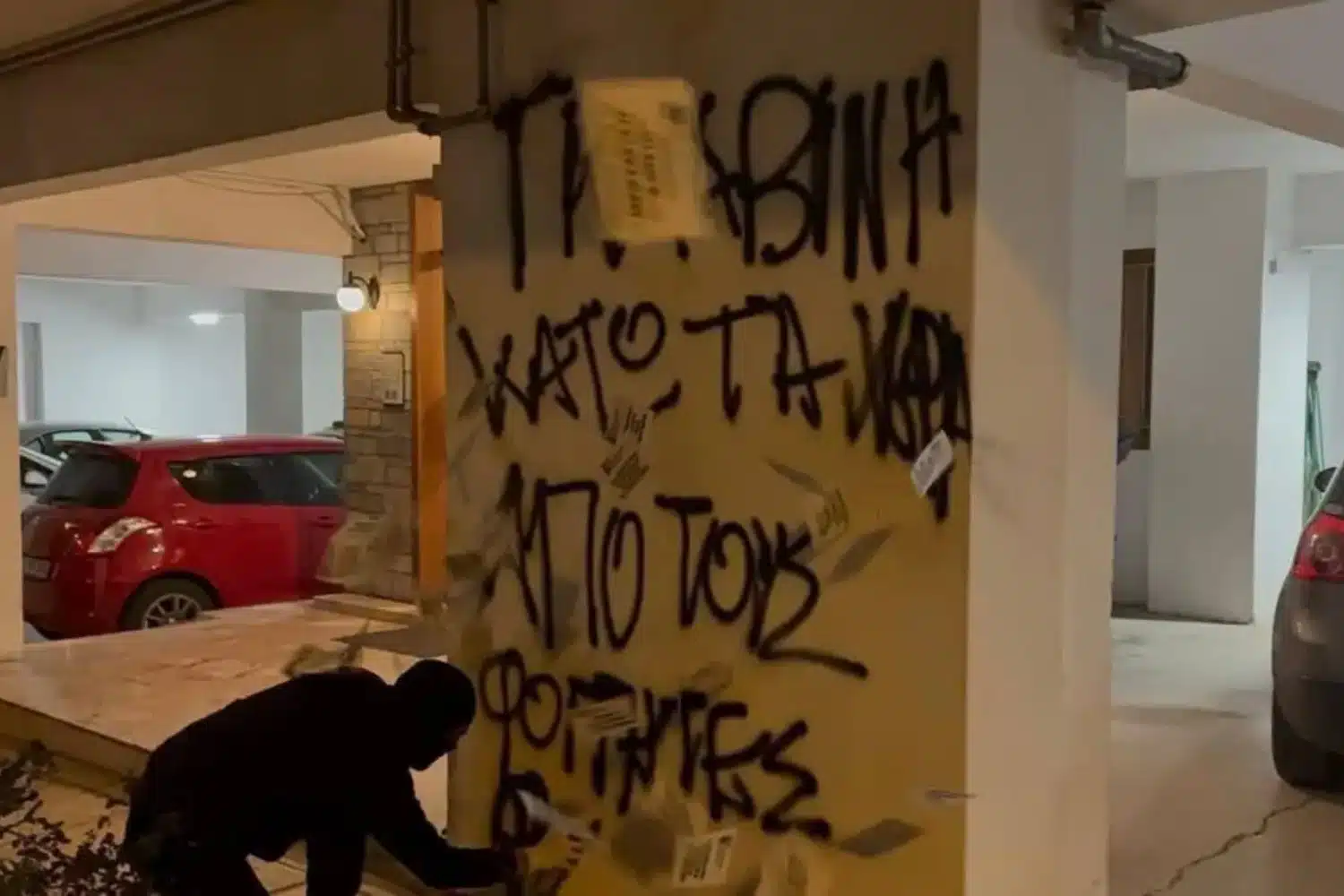 Παρέμβαση Ρουβίκωνα στο σπίτι κοσμήτορα του ΑΠΘ – Έγραψαν σε τοίχο συνθήματα για τη διαγραφή φοιτητή