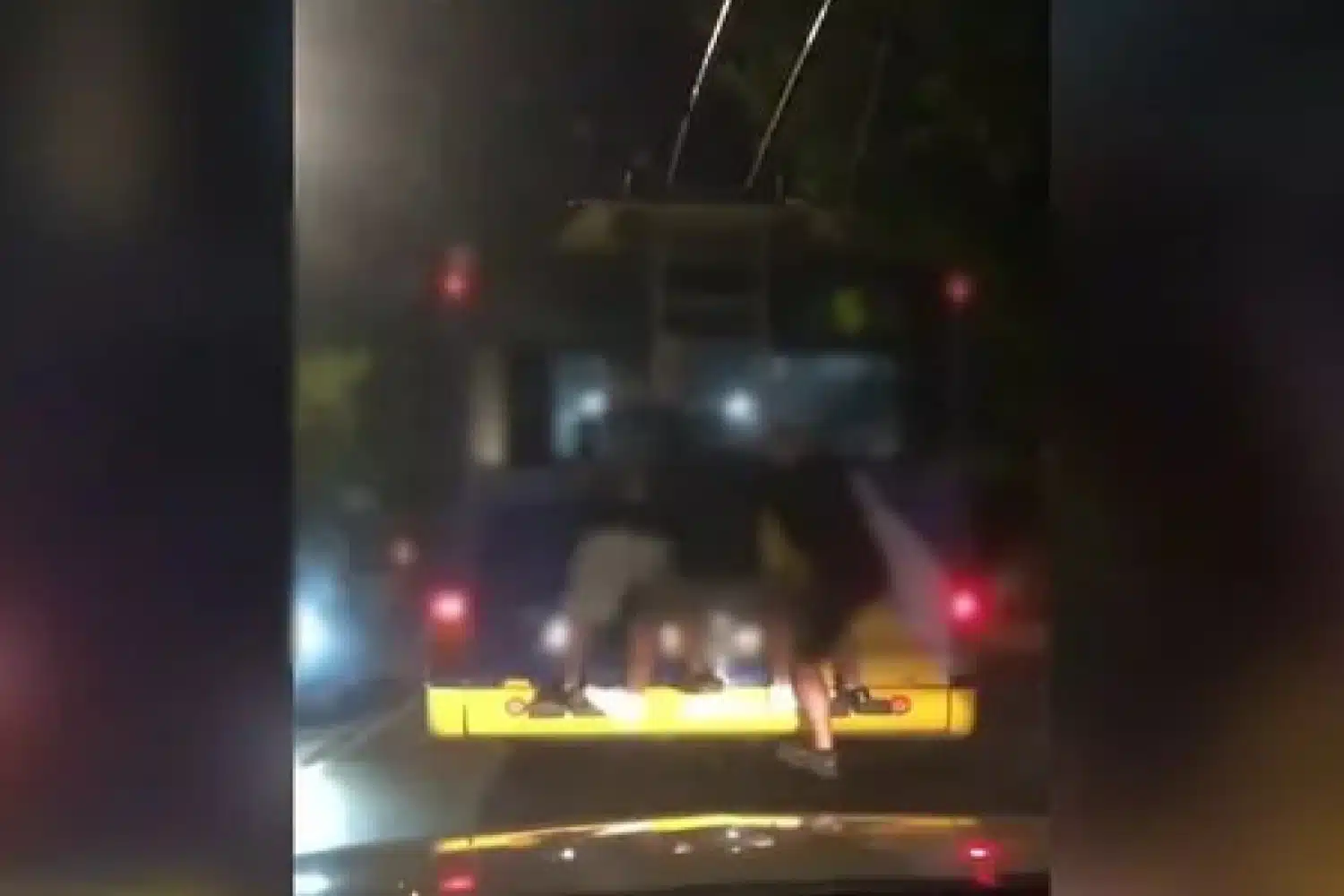 Πρόκειται, όπως είπε ο τηλεοπτικός σταθμός, για τη γραμμή 5 του τρόλεϊ, στο ύψος των Άνω Πατησίων, όπου τρεις ανήλικοι ανεβαίνουν στην πίσω πλευρά του μέσου θέτοντας τους εαυτούς τους σε κίνδυνο.