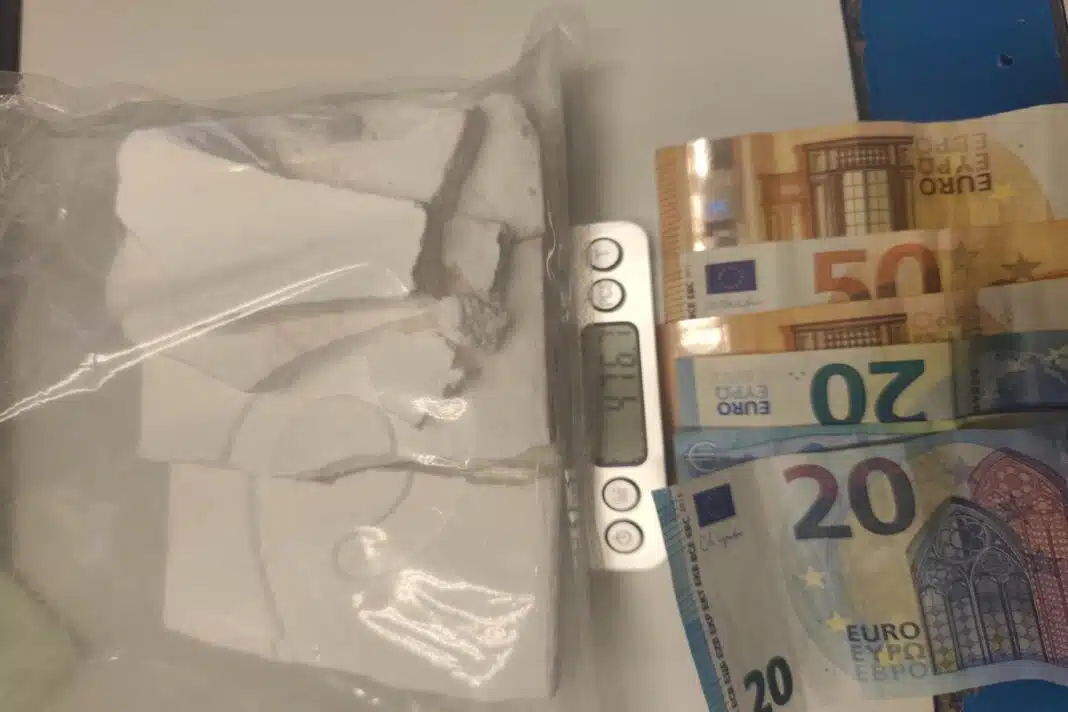Κατά τον έλεγχο του οχήματος, κάτω από τη σέλα, βρέθηκε και κατασχέθηκε νάιλον συσκευασία που περιείχε 476 γραμμ. κοκαΐνης, μικροποσότητα ακατέργαστης κάνναβης καθώς και το χρηματικό ποσό των 210 ευρώ και ο 17χρονος ακινητοποιήθηκε και οδηγήθηκε στο Τμήμα Δίωξης και Εξιχνίασης Εγκλημάτων Πατησίων.