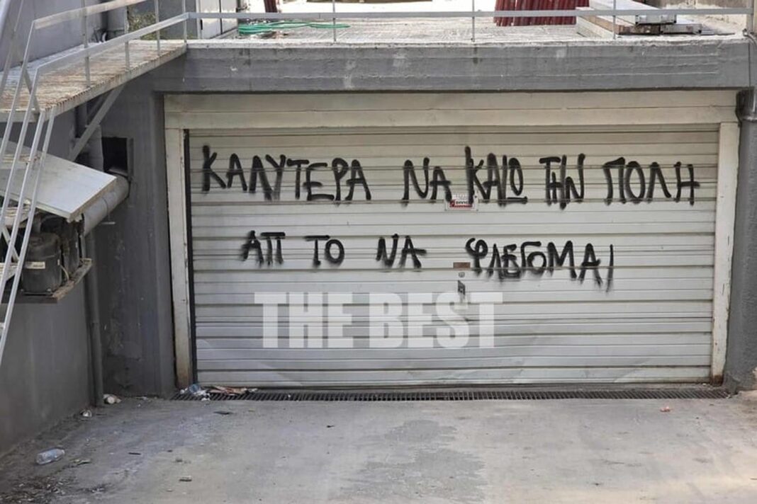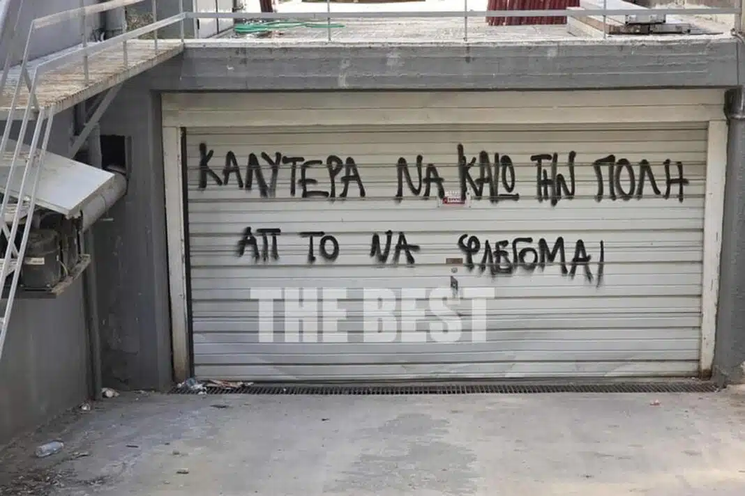 Το μήνυμα, γραμμένο με μαύρα γράμματα, αναφέρει: «Καλύτερα να καίω την πόλη από το να φλέγομαι». Το ανυπόγραφο σύνθημα εντοπίστηκε πριν από λίγες ημέρες, τη στιγμή που η Πάτρα δοκιμαζόταν από τις φλόγες.