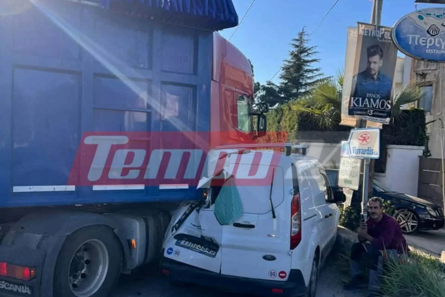 Πάτρα: Νταλίκα συγκρούστηκε με βαν, το «κόλλησε» σε μάντρα και το διέλυσε (εικόνες)