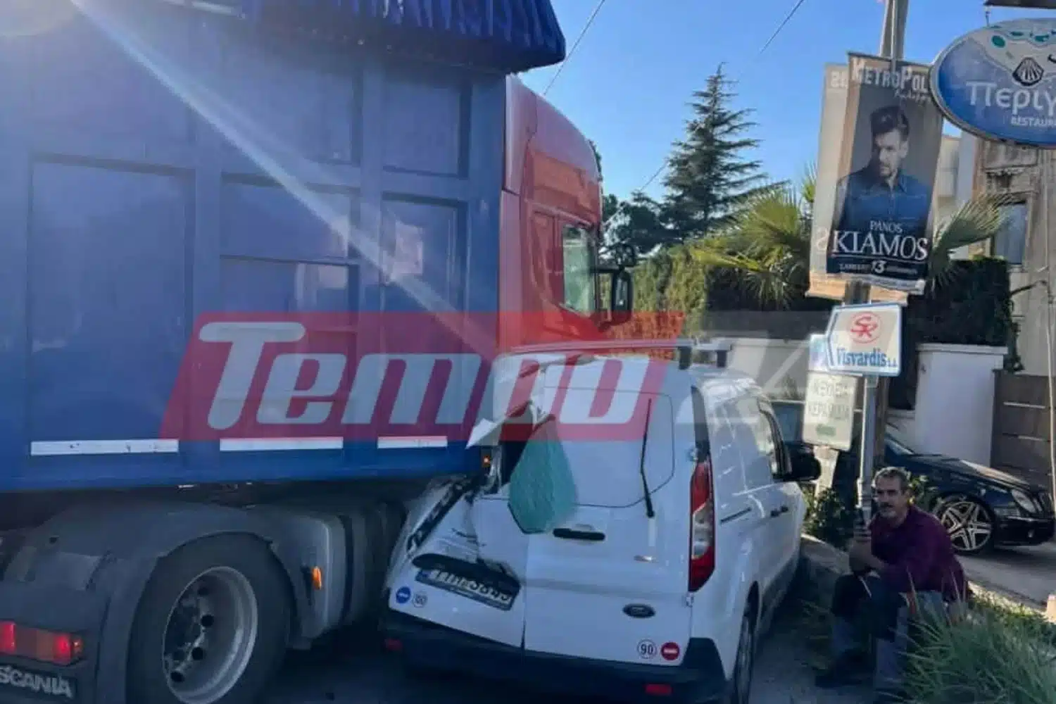 Σύμφωνα με το tempo24.news, νταλίκα συγκρούστηκε με βανάκι, το οποίο και «στρίμωξε» σε μια μάντρα σπιτιού. Το βανάκι υπέστη μεγάλη ζημιά και από θαύμα ο οδηγός του δεν τραυματίστηκε σοβαρά.