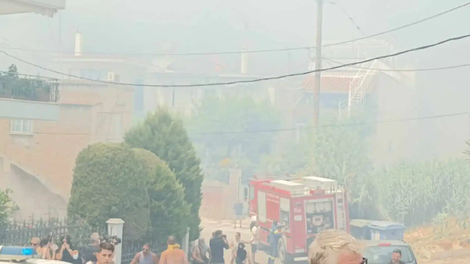 Οι καπνοί από τη φωτιά είναι έντονοι και υπάρχει μεγάλη αναστάτωση καθώς οι φλόγες είναι κοντά στα σπίτια.