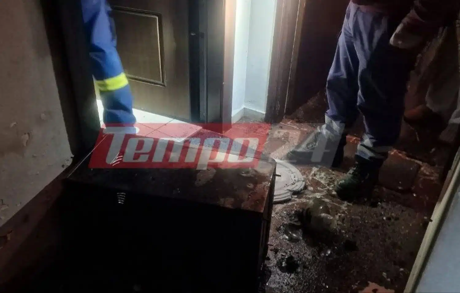 Μία γυναίκα άρχισε να καλεί σε βοήθεια καθώς δύο πόρτες διαμερισμάτων άρχισαν να καίγονται.