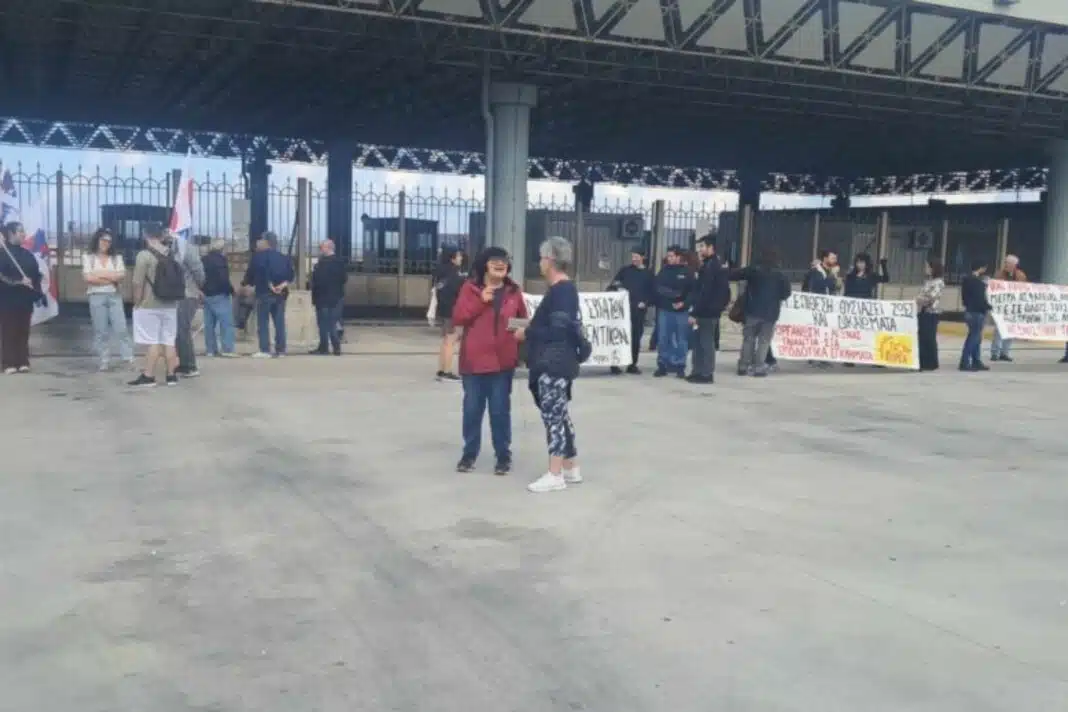 Συγκέντρωση διαμαρτυρίας στις πύλες εισόδου του λιμανιού της Πάτρας πραγματοποιούν εργαζόμενοι και αντιπροσωπείες των ναυτεργατικών σωματείων ΠΕΜΕΝ και ΣΤΕΦΕΝΣΩΝ για το χαμό της 47χρονης ναυτεργάτριας που έχασε τη ζωή της επί τόπου όταν παρασύρθηκε από νταλίκα, πάνω στον καταπέλτη, στη διάρκεια εκφόρτωσης στο νέο λιμάνι της Πάτρας.