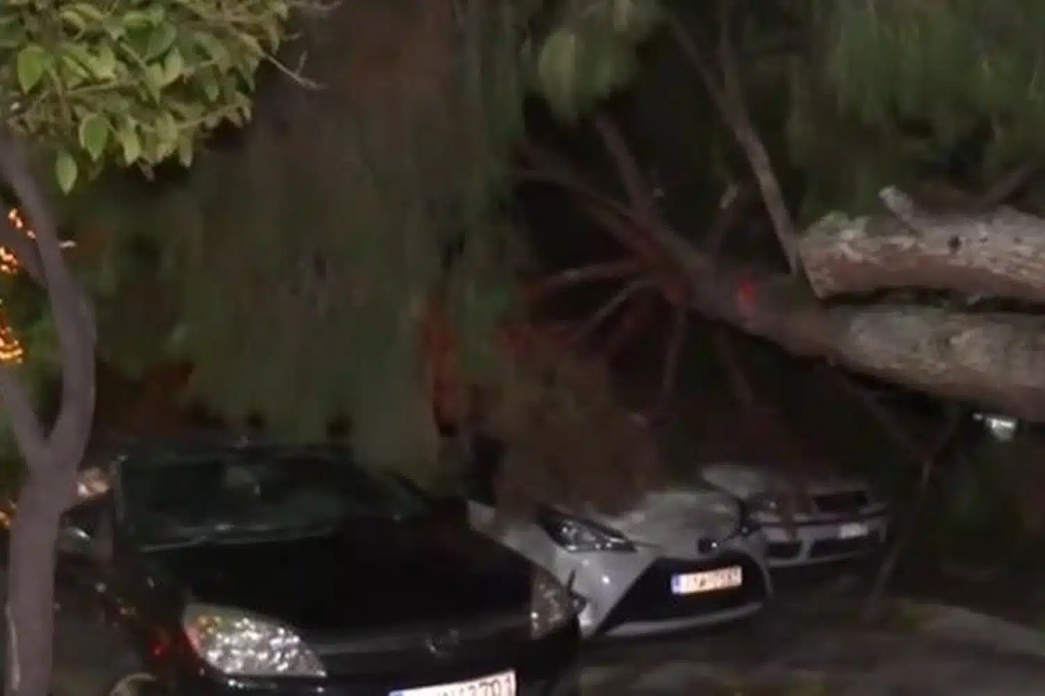 Ένα υψηλό πεύκο έπεσε πάνω σε τρία σταθμευμένα αυτοκίνητα, στην περιοχή της Νέας Σμύρνης, προκαλώντας στα ΙΧ σημαντικές καταστροφές.