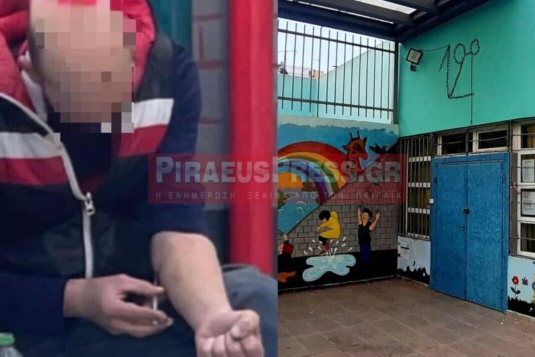 Σύμφωνα με το PiraeusPress.gr νεαρός άνδρας κάνει χρήση ναρκωτικών ουσιών, καθισμένος στο περβάζι του νηπιαγωγείου, την ώρα που οι μαθητές αποχωρούν από το σχολείο, μπροστά στα μάτια περαστικών και γονέων.