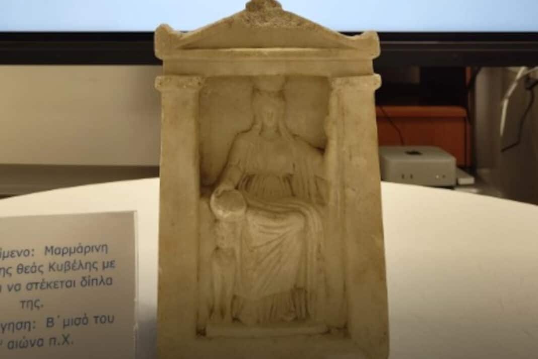 Στο πλαίσιο της έρευνας, εντοπίστηκε κρυμμένη σε πατάρι και κατασχέθηκε μια μαρμάρινη ναόσχημη αναθηματική στήλη (ένθρονη θεά Κυβέλη με ένα λιοντάρι δίπλα της), η οποία χρονολογείται στον 4ο π.Χ. αιώνα.