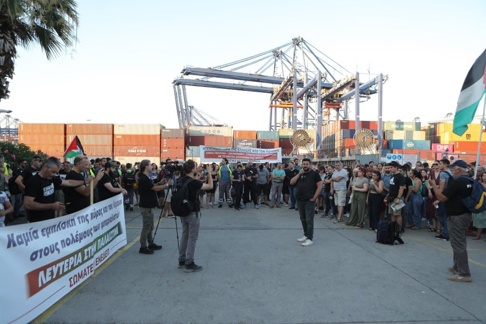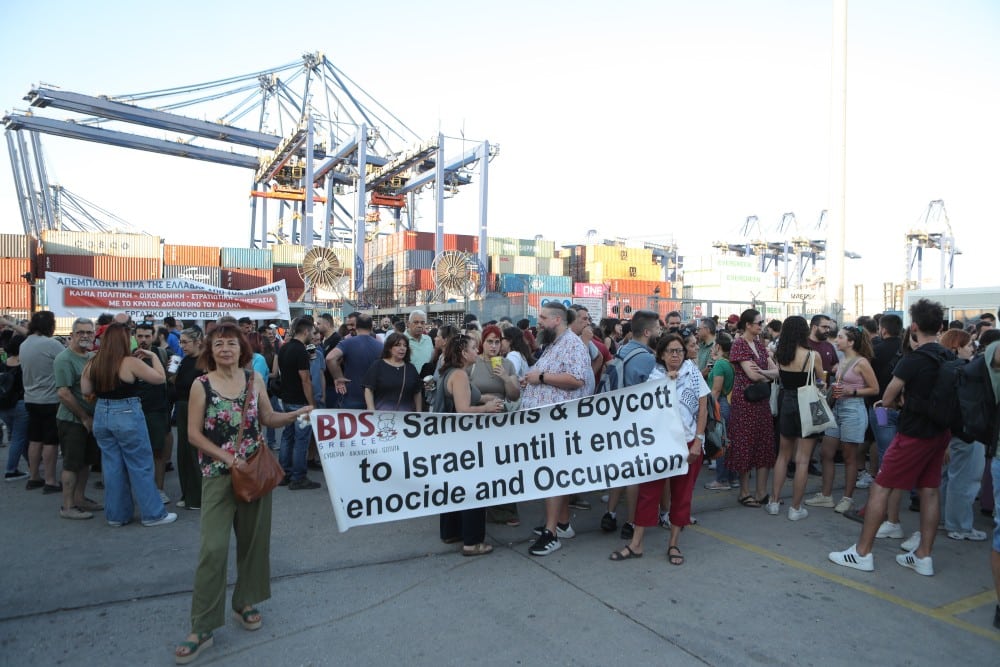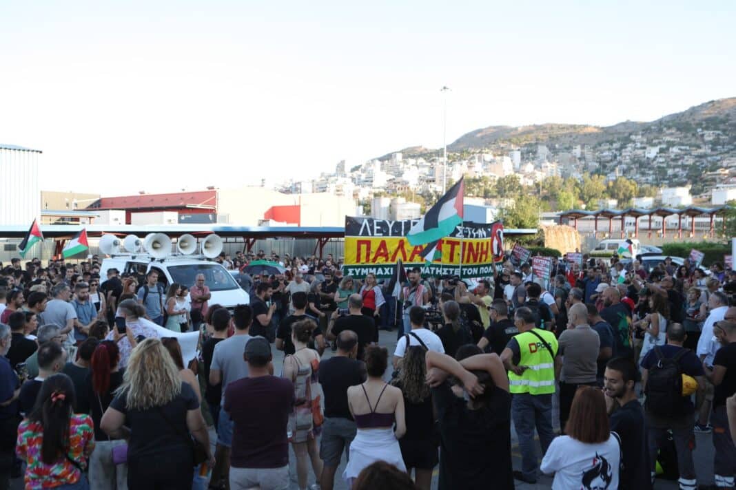 Πιο αναλυτικά, στο λιμάνι του Πειραιά και συγκεκριμένα στις προβλήτες 2 και 3 της COSCO βρίσκονται από νωρίς το πρωί σωματεία, φορείς, συλλογικότητες και εκατοντάδες άνθρωποι, κρατώντας παλαιστινιακές σημαίες και πανό, που απαιτούν να διακοπούν οι σχέσεις της Ελλάδας με το Ισραήλ και καλούν στον τερματισμό του πολέμου στη Γάζα.