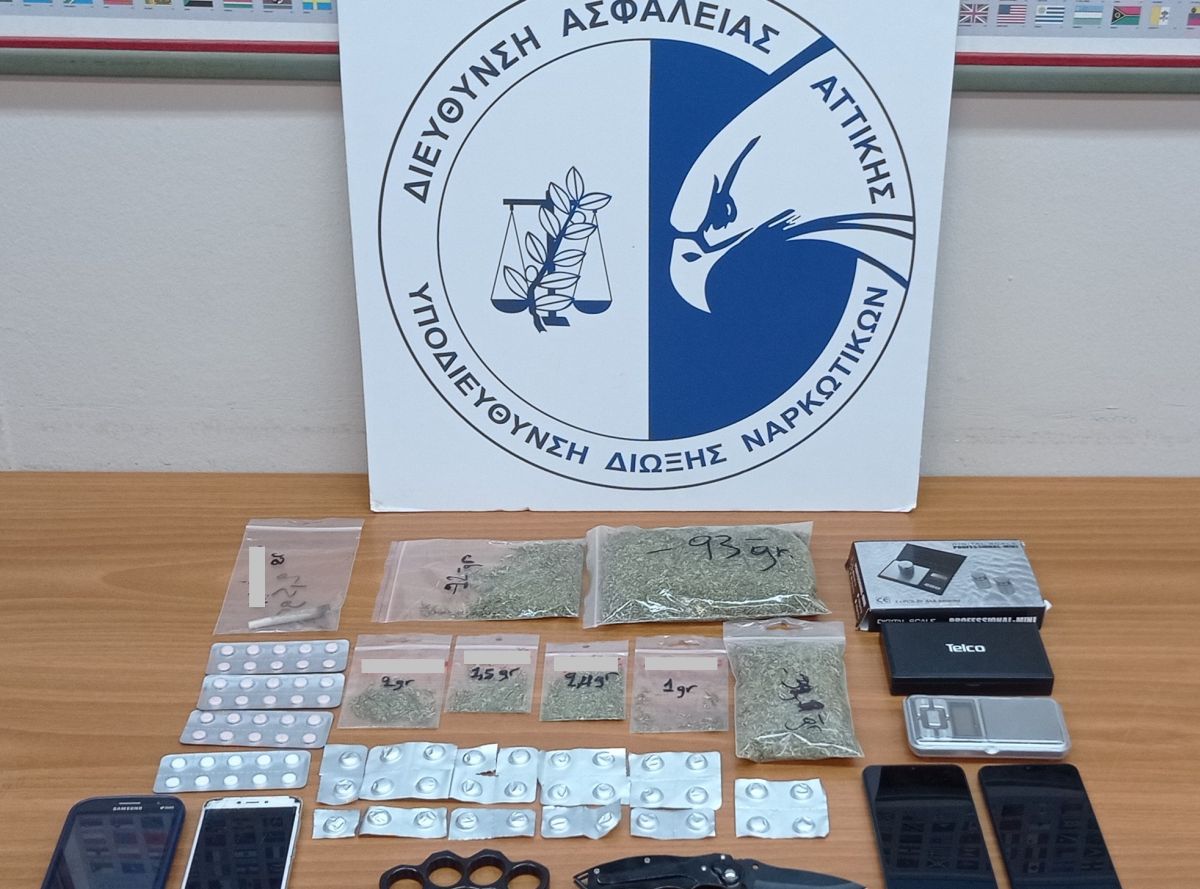 Σύμφωνα με την ΕΛ.ΑΣ σε έρευνες που πραγματοποιήθηκαν στις οικίες των συλληφθέντων ηλικίας 53, 46 και 54 ετών αντίστοιχα κατασχέθηκαν μεταξύ άλλων 143,9 γραμμ. συνθετικής κανναβινοειδούς ουσίας, 71 ναρκωτικά δισκία, 3 ζυγαριές ακριβείας, σουγιάς, σιδερογροθιά και 2 μοτοσικλέτες.