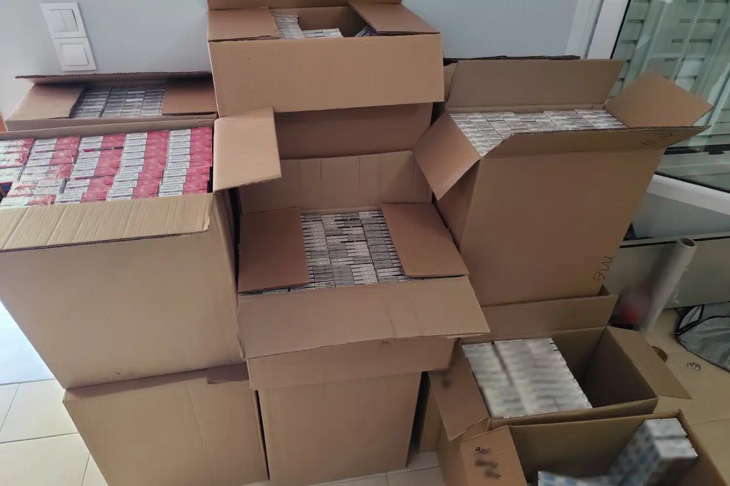 Σε επερχόμενη έρευνα στην οικία του κατηγορουμένου, βρέθηκαν επιπλέον και κατασχέθηκαν 7.500 πακέτα τσιγάρα και 1.780 συσκευασίες καπνού που δεν έφεραν την ενδεικτική ταινία φόρου κατανάλωσης.