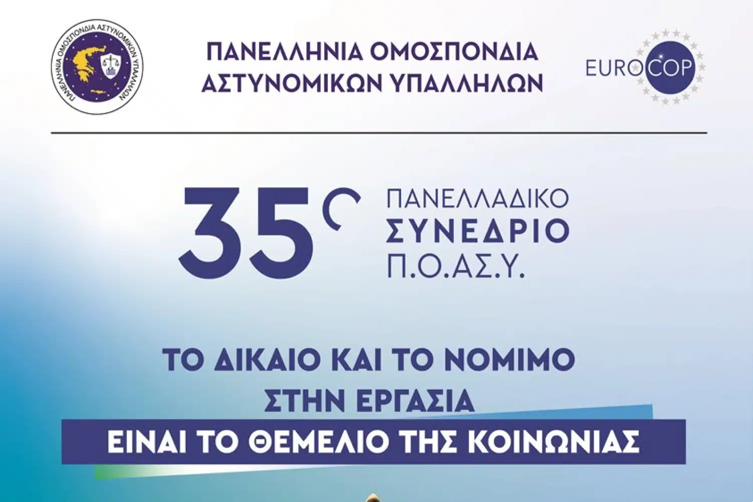 Το 35ο τακτικό συνέδριο της Πανελλήνιας Ομοσπονδίας Αστυνομικών Υπαλλήλων (ΠΟΑΣΥ) θα διεξαχθεί το διήμερο 27 και 28 Φεβρουαρίου 2025 στην Αθήνα.